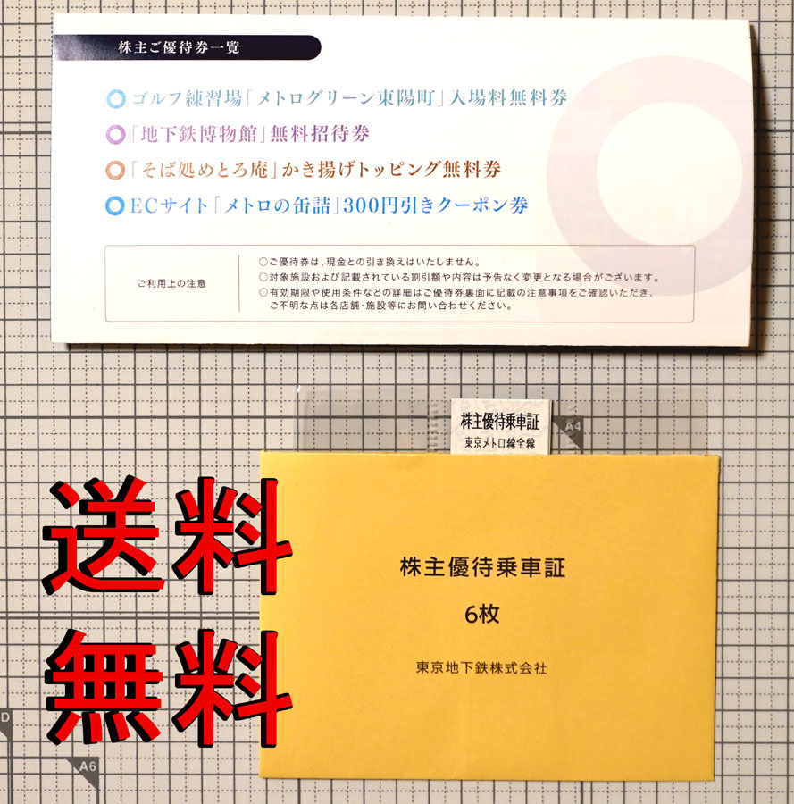★送料無料!! 東京メトロ株主優待乗車証6枚 株主ご優待券 東京地下鉄 2025.12/31