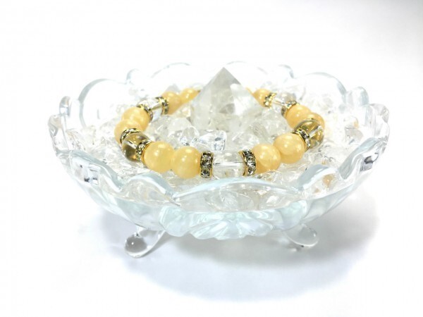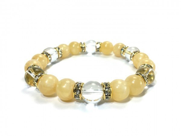 アラゴナイト×水晶 パワーストーン ブレスレット 天然石ブレス 10mm (ロンデル:ゴールド) メンズ・レディース 浄化済み