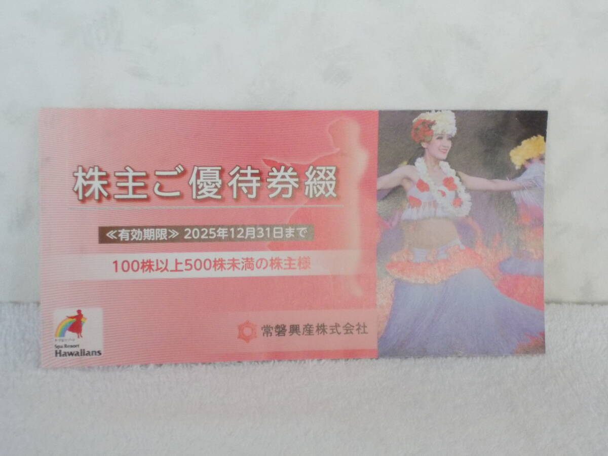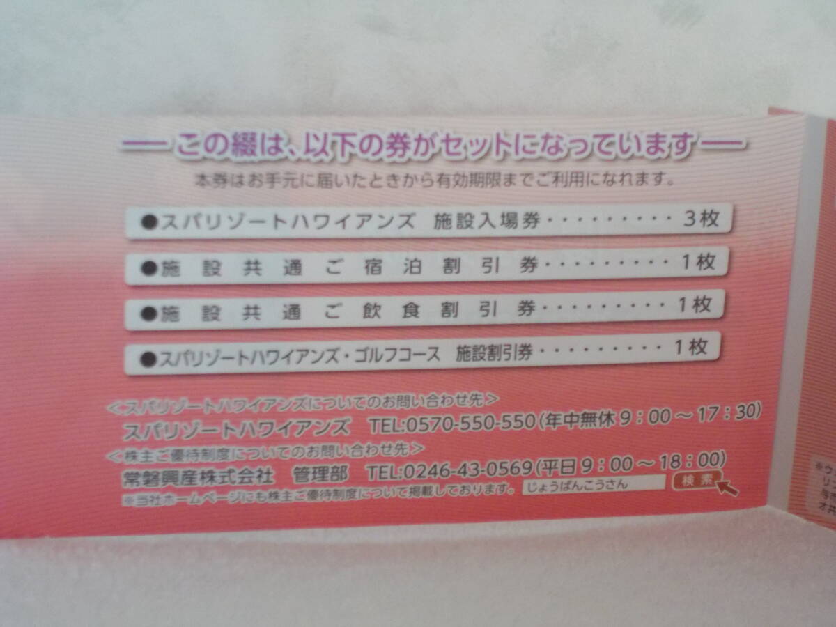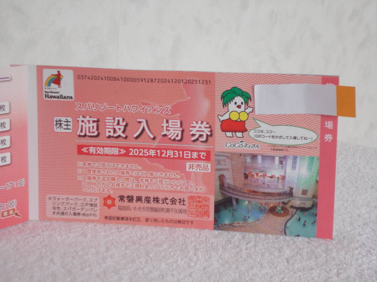 ハワイアンズ株主優待券2025.12.31有効 御覧の券になります。代表して入場券しか撮ってませんが、全部あります。全部で6枚です。入場券3枚、宿泊割引券1枚、飲食割引券1枚、ゴルフ施設割引券1枚です。