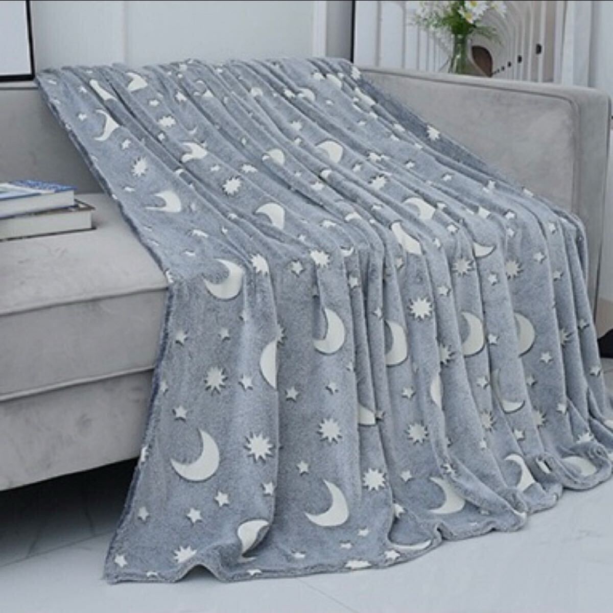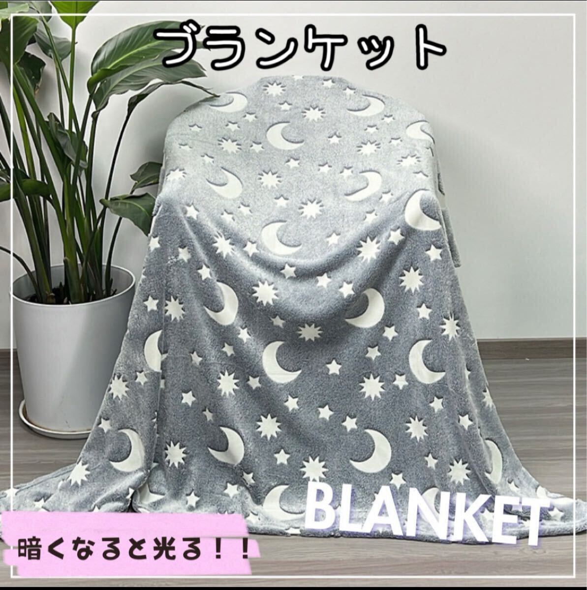 光るロケットと宇宙☆ふわふわかっこいい、可愛い蓄光ブランケットです。