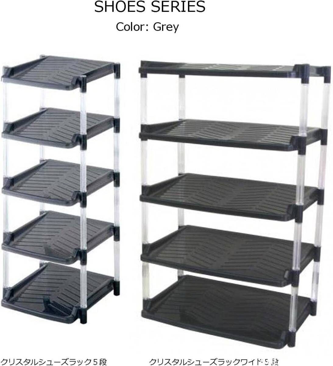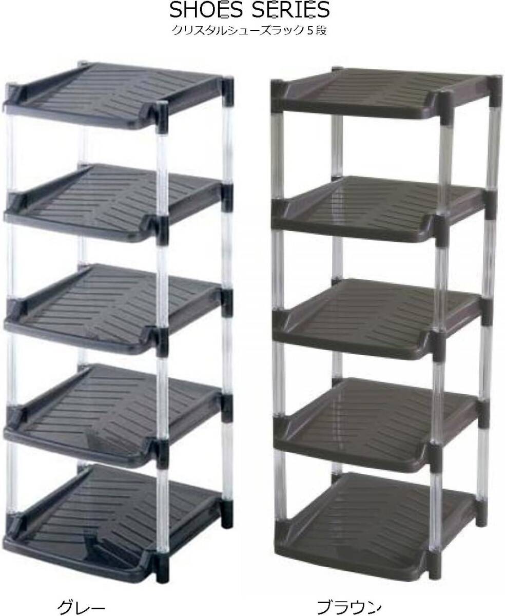 平和工業(Heiwa Kougyou) シューズラック クリスタル 5段 グレイ グレー