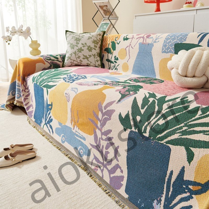 どんなインテリアにも合わせやすい北欧風フリンジ付きソファーカバー。