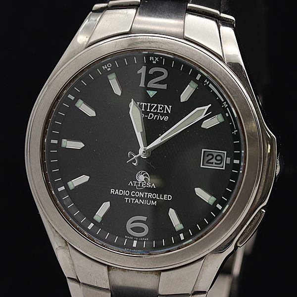 1円 稼働 シチズン アテッサ エコドライブ 電波ソーラー ブラック文字盤 メンズ腕時計 3404000 9PRT SMZ