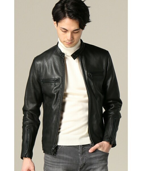 シボが多めの高級感のあるタイトなタイプですのでバイク乗車時だけでなくジュンヤVANSONのような街中でのファッションライダースとして非常に使い勝手がいいと思います。