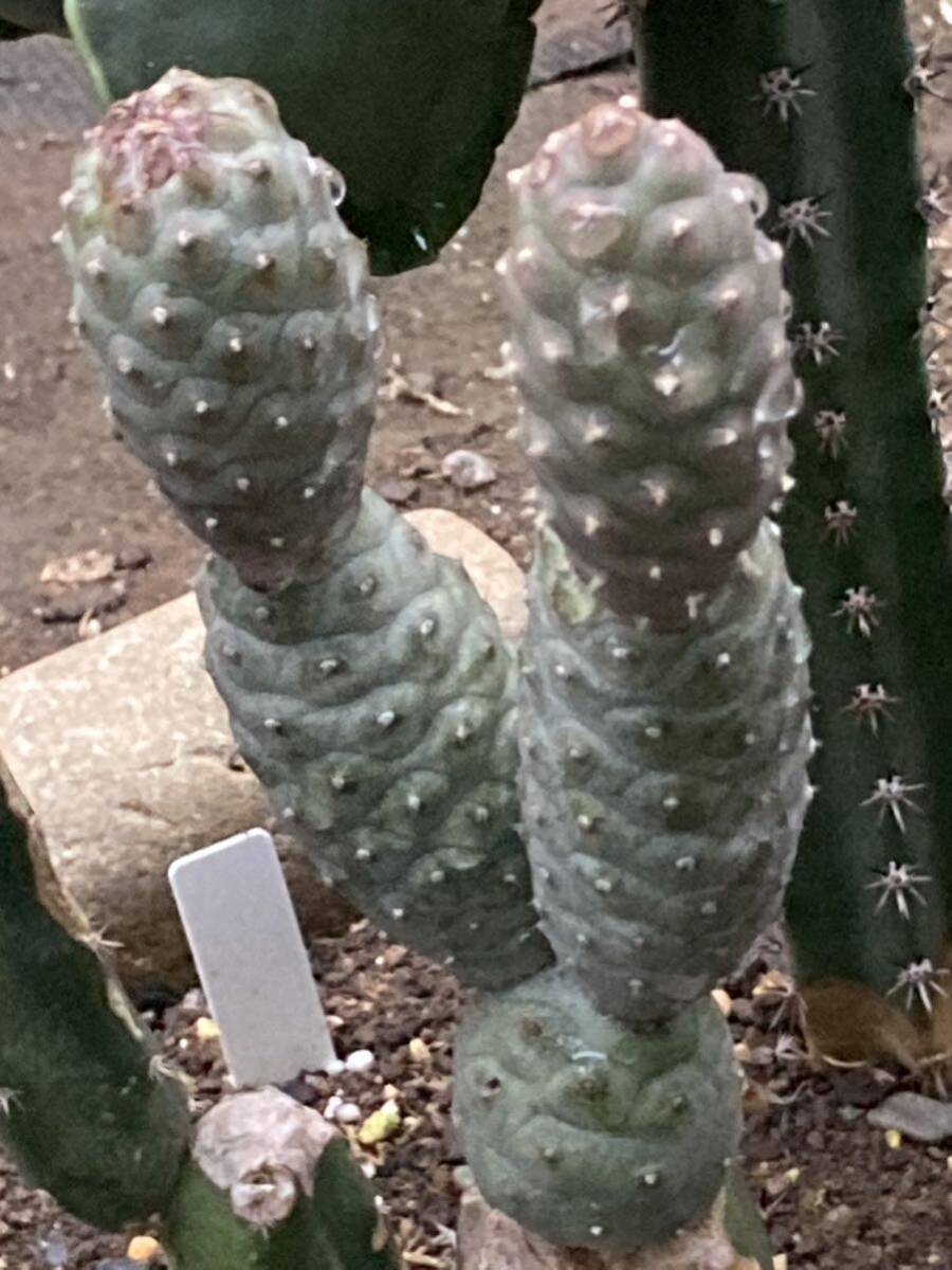 常に成長が遅く、成長しても一年に1節しか大きくなりません。また、非常に節が取れ易く扱いの難しいサボテンになります(品種的には強いですが)。これは、動物にくっついて繁殖するからと言われています。