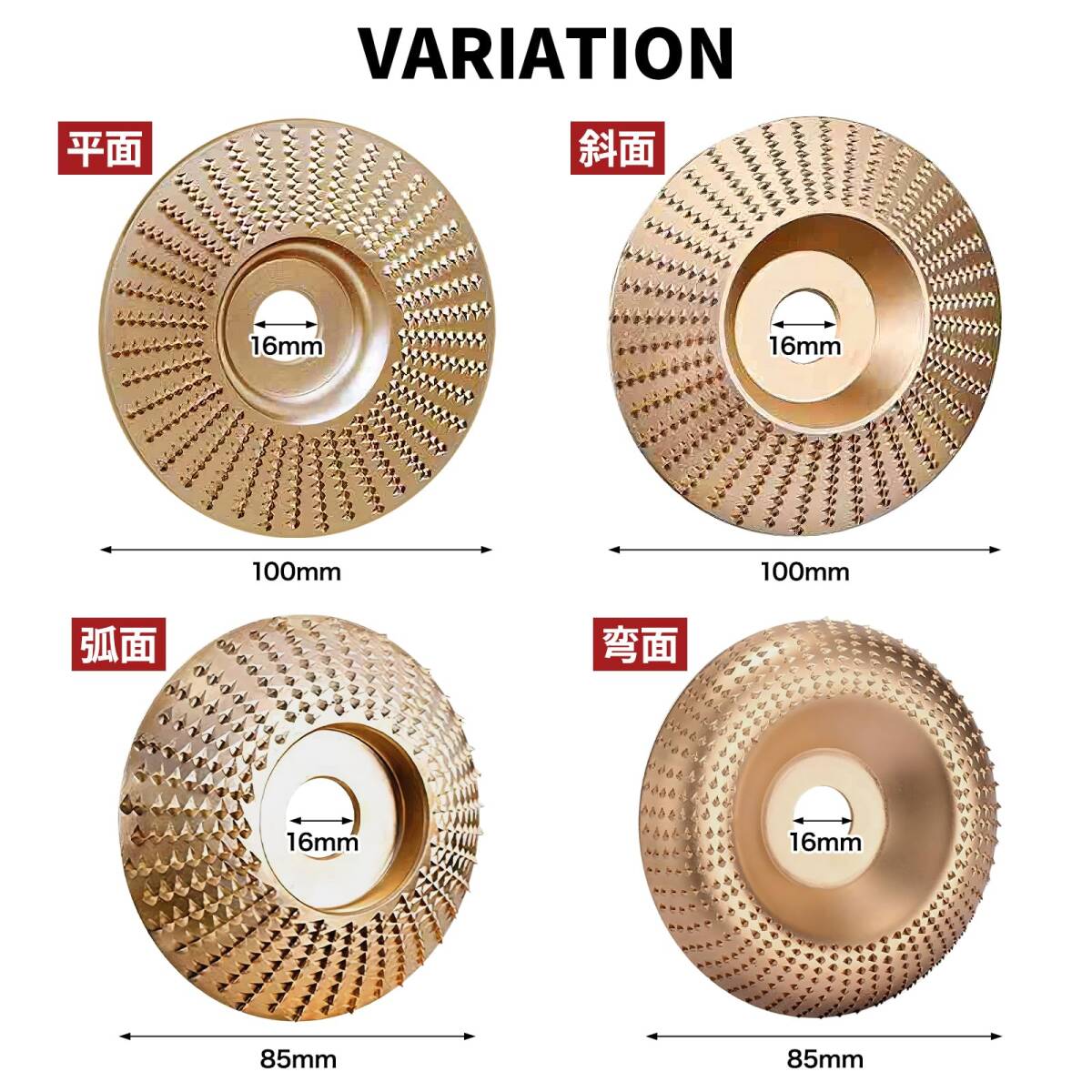【サイズ】:円形の木彫り研削盤の外径は85mmです。平らな木彫りの研削盤の外径は100mmです。斜角木彫り研削盤の外径は100mmです。 ※ 木材形成および彫刻ディスクの内径は16MM(5/8インチ)のアーバーを備えたすべての標準的な4インチまたは4-1/2インチの角研削機と互換性があります。高性能な木材彫刻ツールであり、角研削機、手動研削機に適しています。