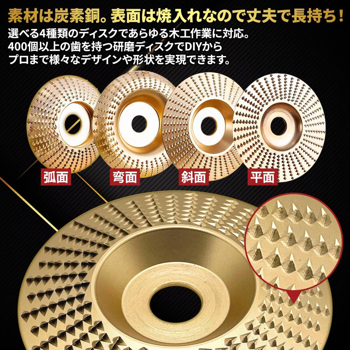 【商品詳細】効率的な作業 鋭利な歯を持つ研磨ディスクで、少ない力でパワフルな研磨が可能です。木工作業がスムーズになり、時間と労力を節約できます。 簡単取り付け 本体中央の取り付け穴は標準型の電動アングルグラインダーに対応する約16mmで、面倒な操作なしで簡単に装着可能です。