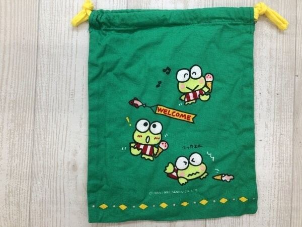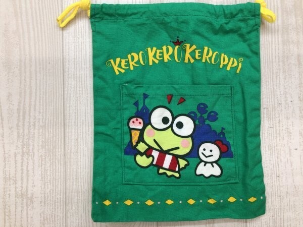 SANRIO サンリオ キッズ けろけろけろっぴ てるてる 巾着袋 緑 です。