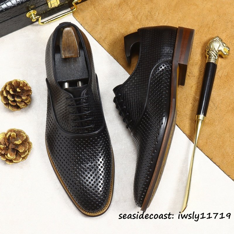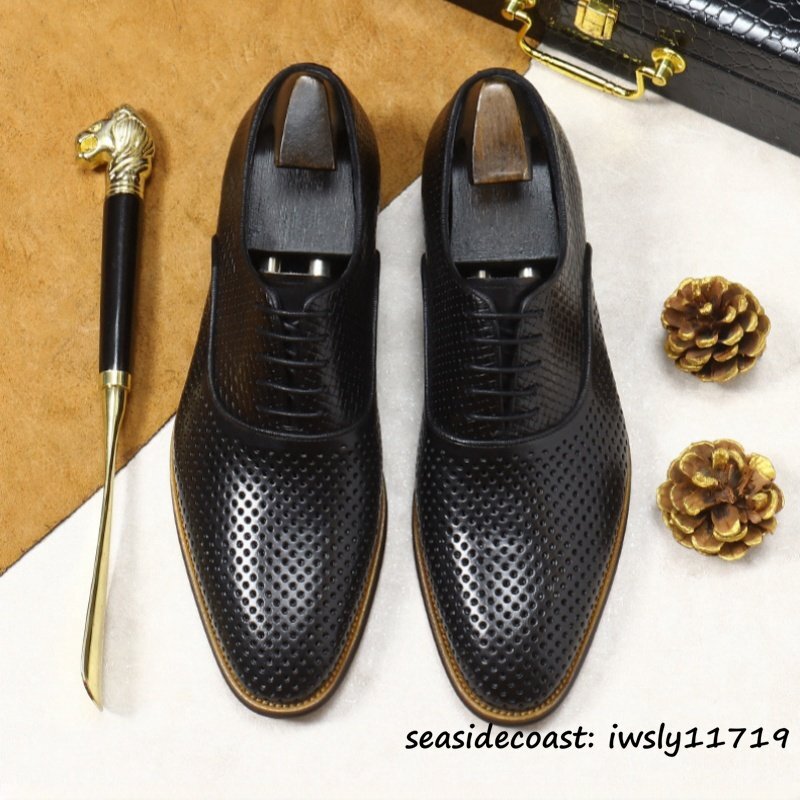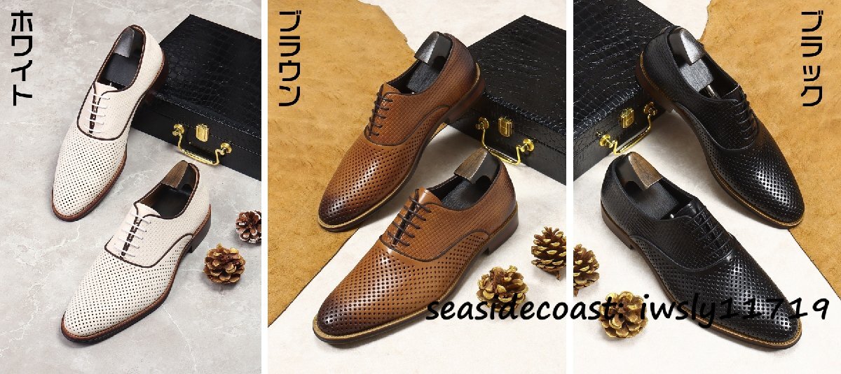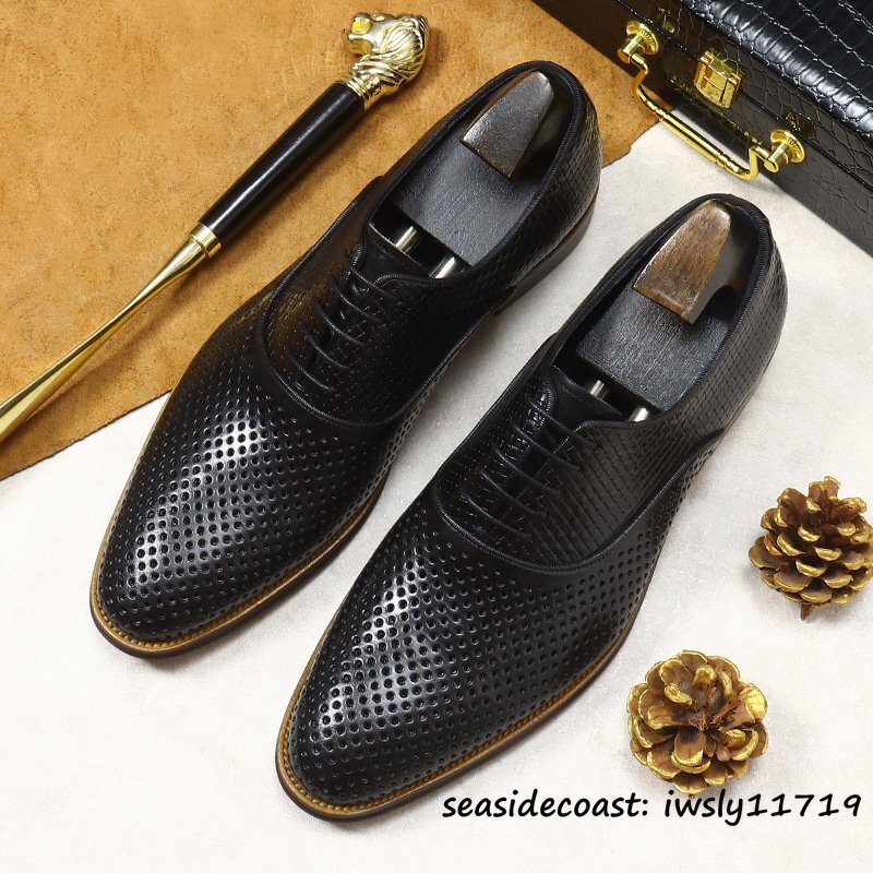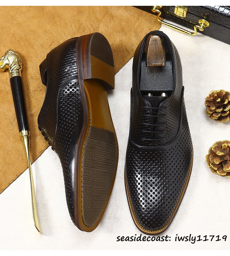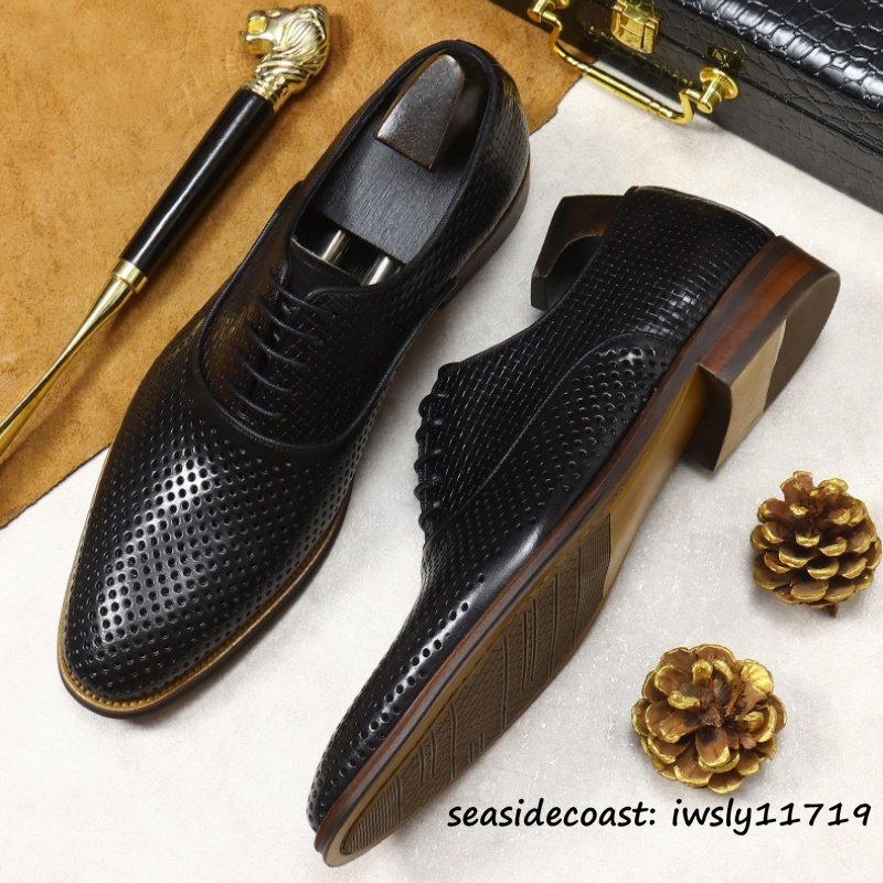 超希少■ビジネスシューズ 革靴 高級牛革 職人手作り 本革 レザーシューズ メンズ 冠婚葬祭 新品 紳士靴 メッシュ 通気性 ブラック 24.5cm