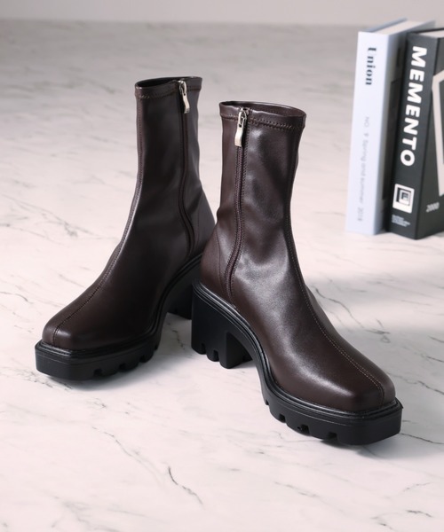 参考商品名:スクエアトゥ厚底ストレッチショートブーツ