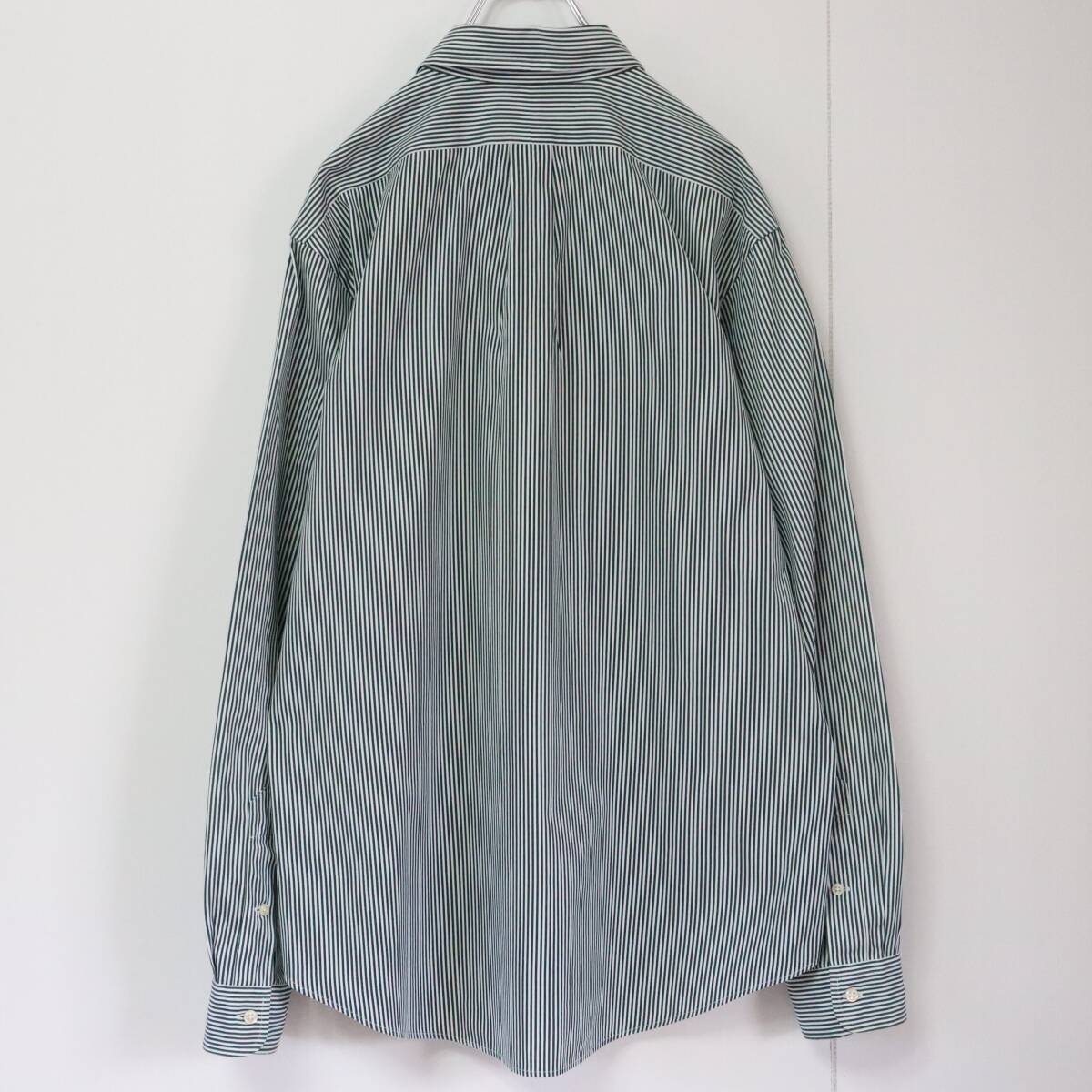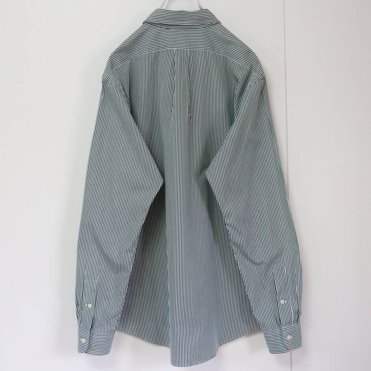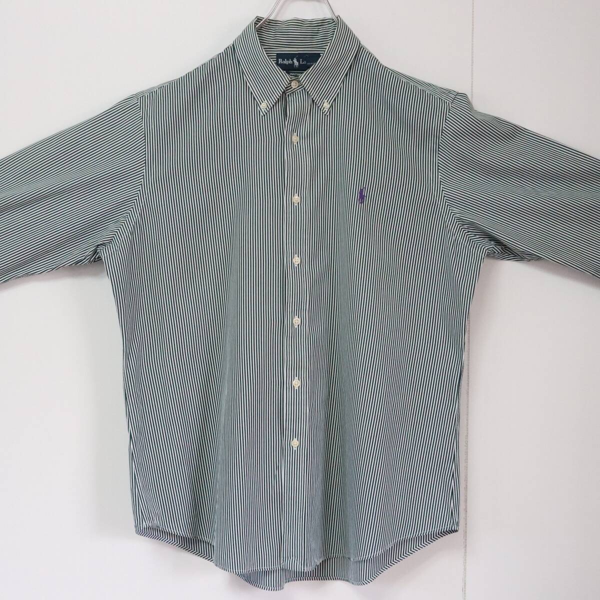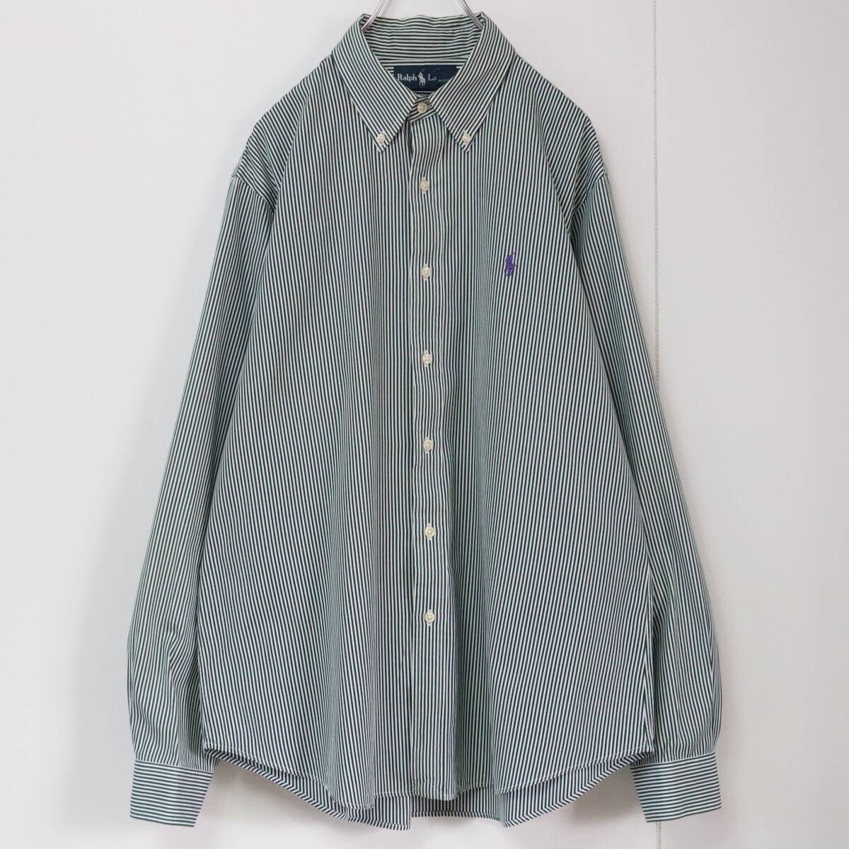 【ロンドンストライプ柄】ラルフローレン BDシャツ 刺繍ロゴ 緑×白 Lサイズ