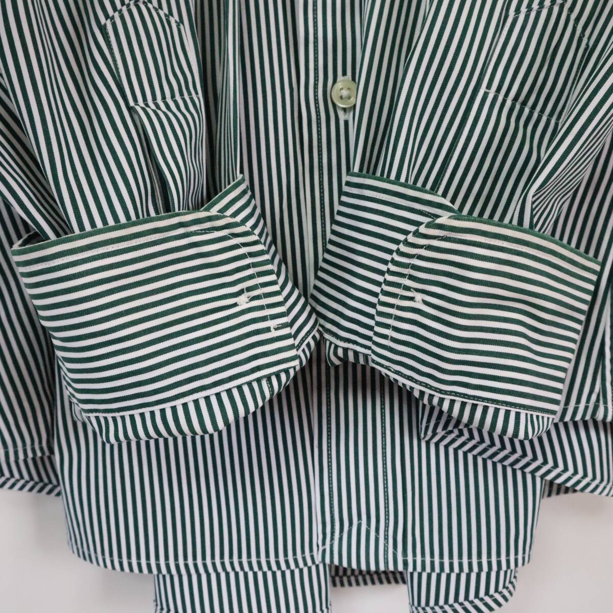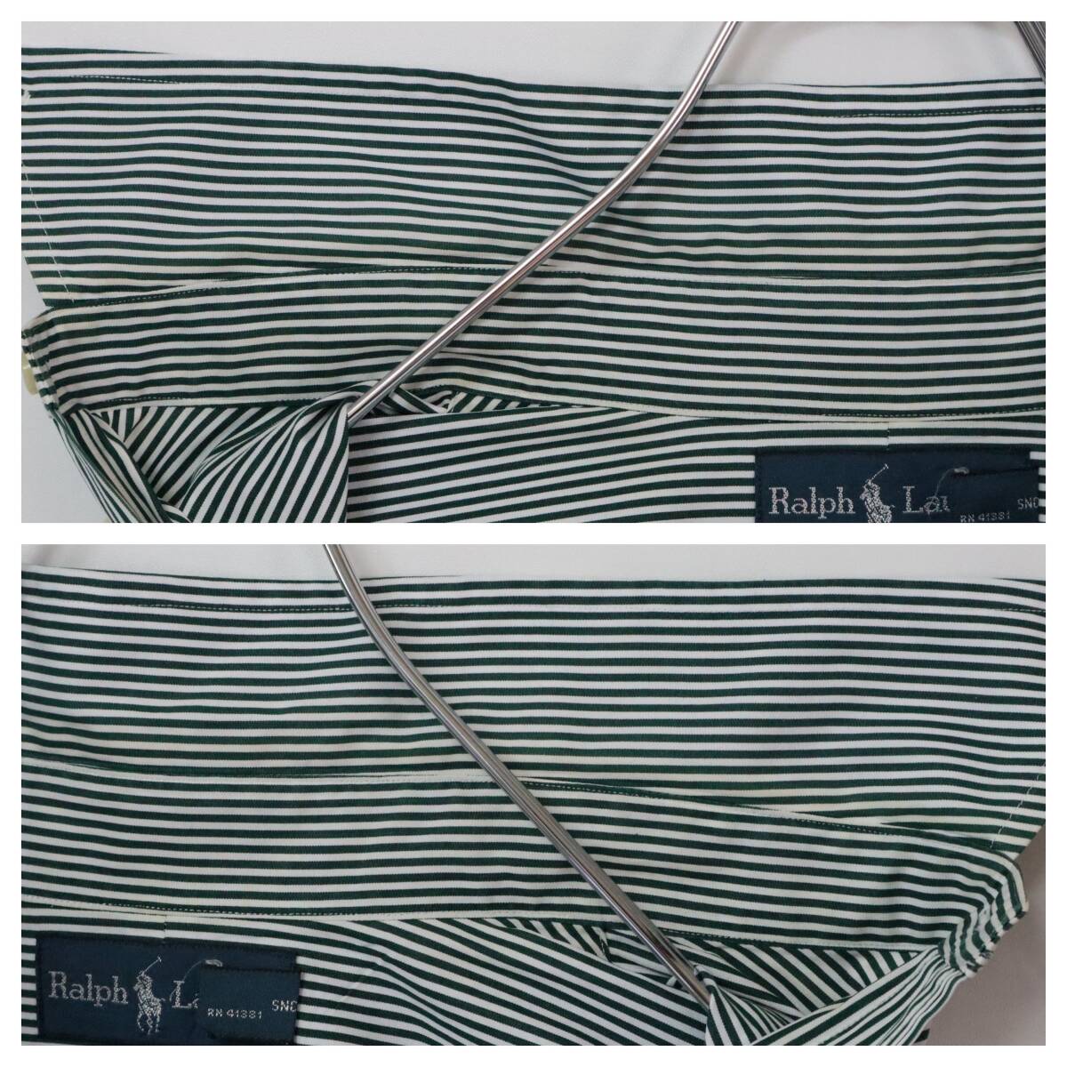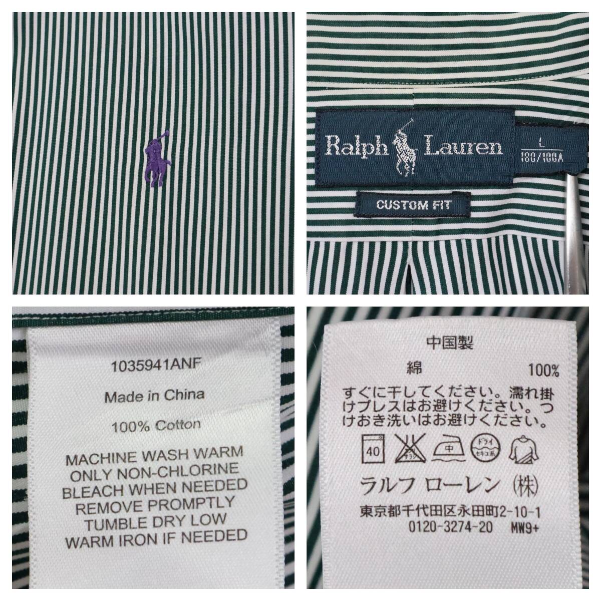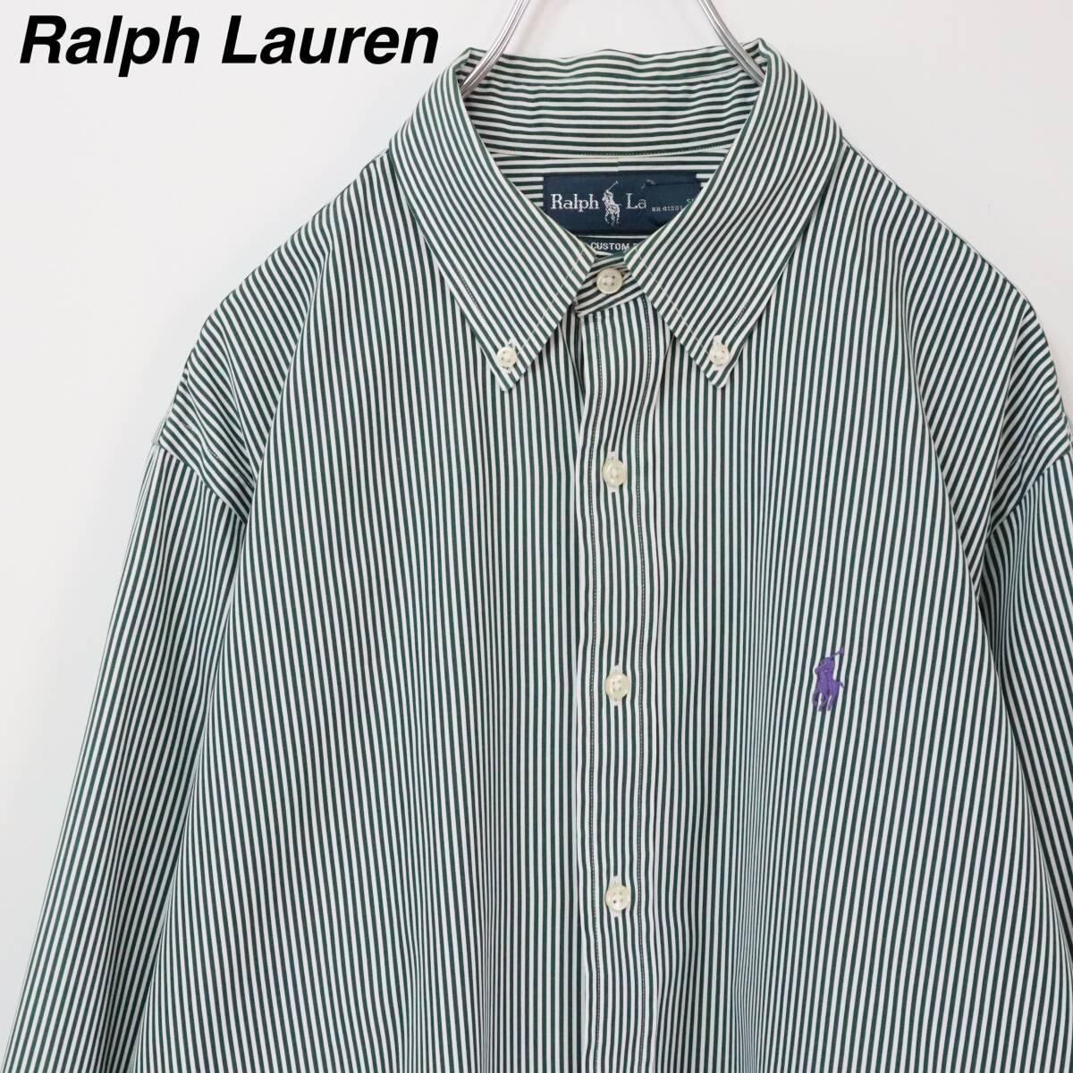 【ロンドンストライプ柄】ラルフローレン BDシャツ 刺繍ロゴ 緑×白 Lサイズ