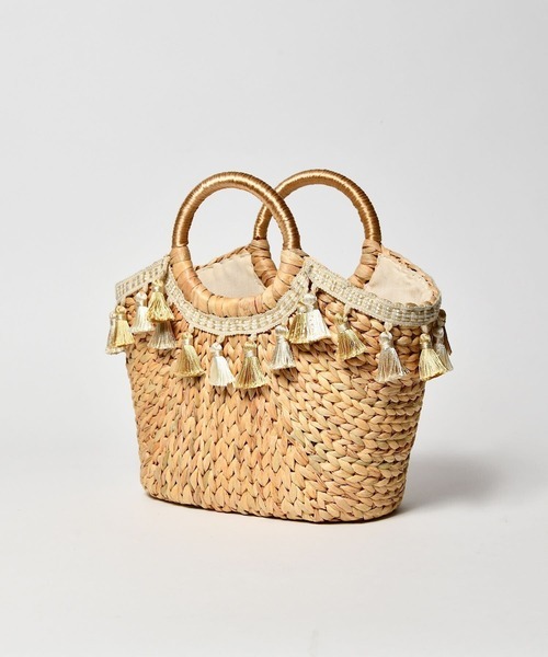 参考商品名:【Le Jardin】タッセル かごバッグ ゴールド×ベージュ