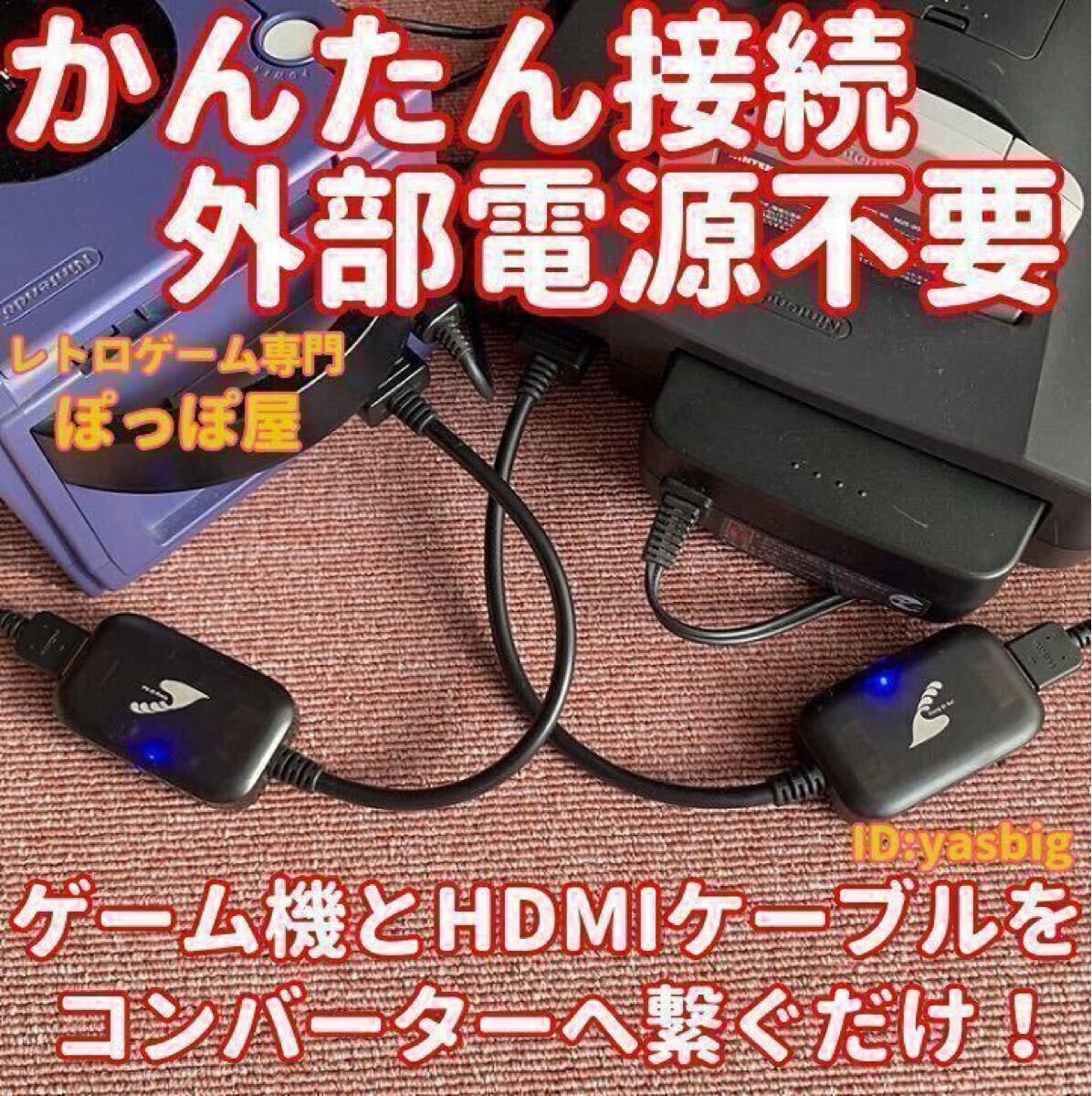 ・ゲーム機本体に変換器を取り付け、HDMIケーブルでテレビと繋ぐだけになります。