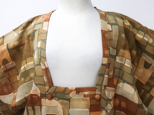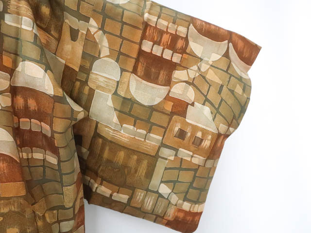 リサイクル商品ではございますが、大変良い状態のお品です。 地色は茶です。 1枚目の画像が近いお色かと思われます。 素材は正絹です。 |