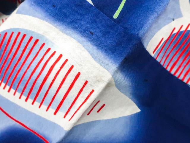 リサイクル商品のため、右肩山と左背に薄汚れがございますがご着用いただけると存じます。 肩当付でございます。 地色は 青です。 1枚目の画像が近いお色かと思われます。 素材は綿です。 |