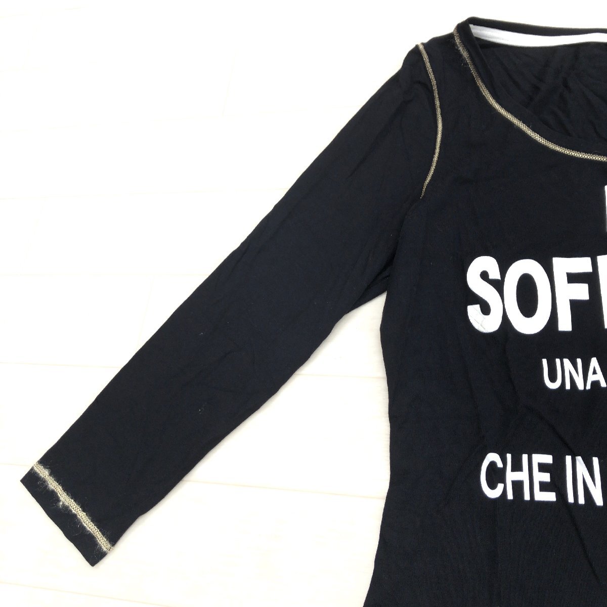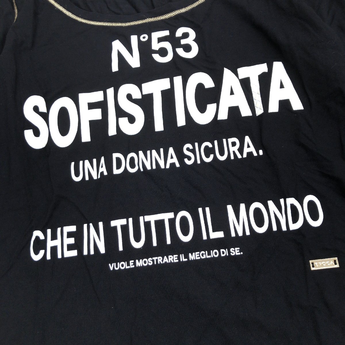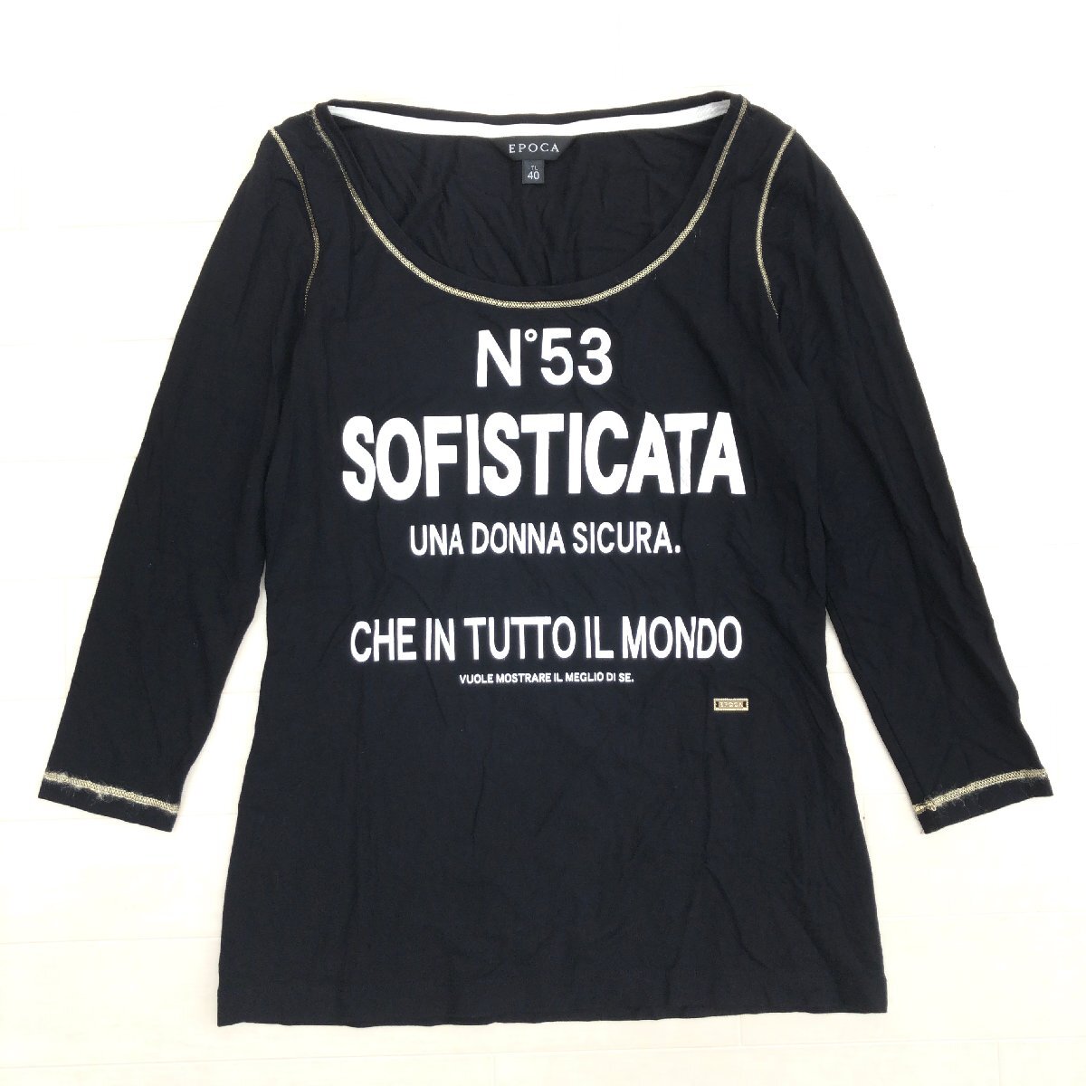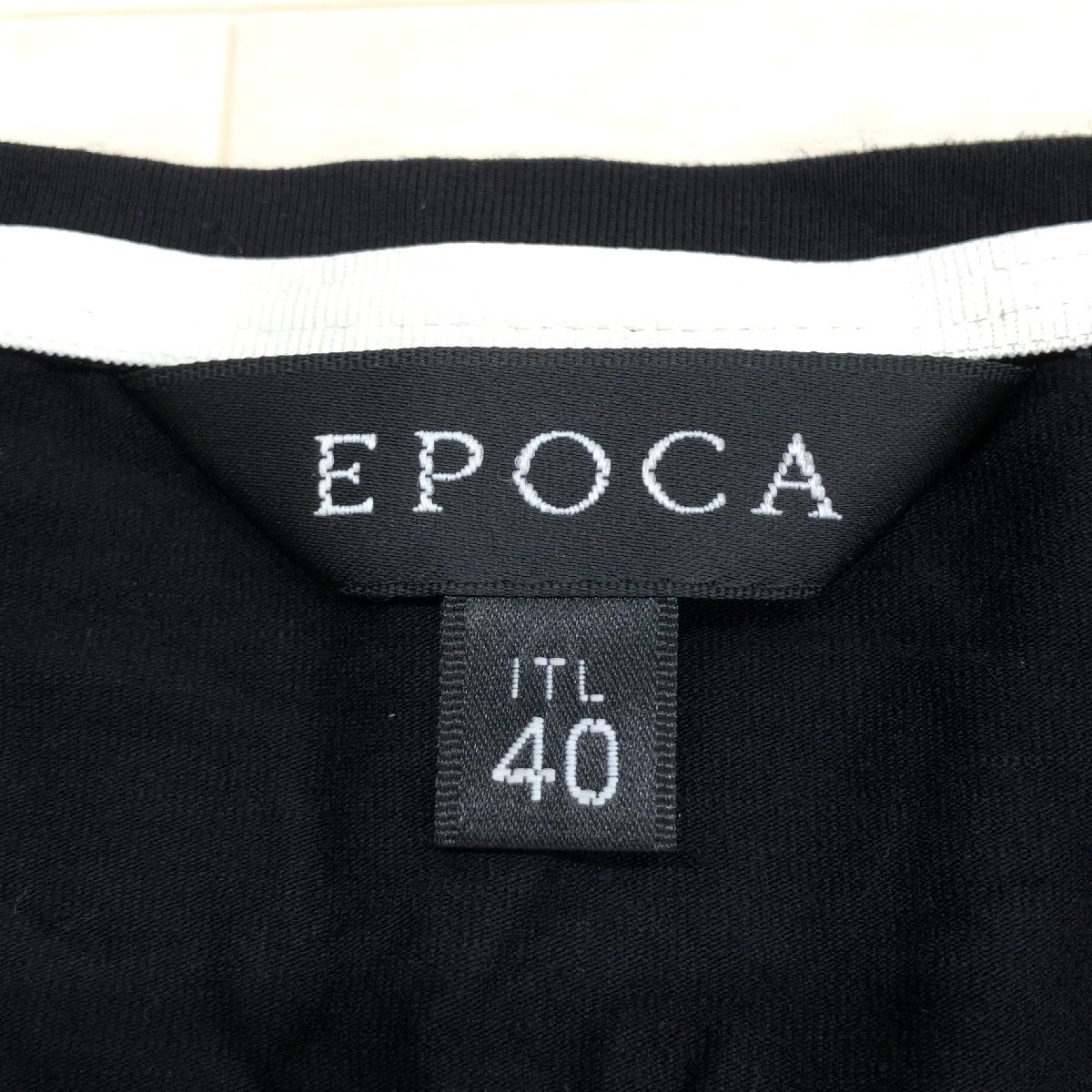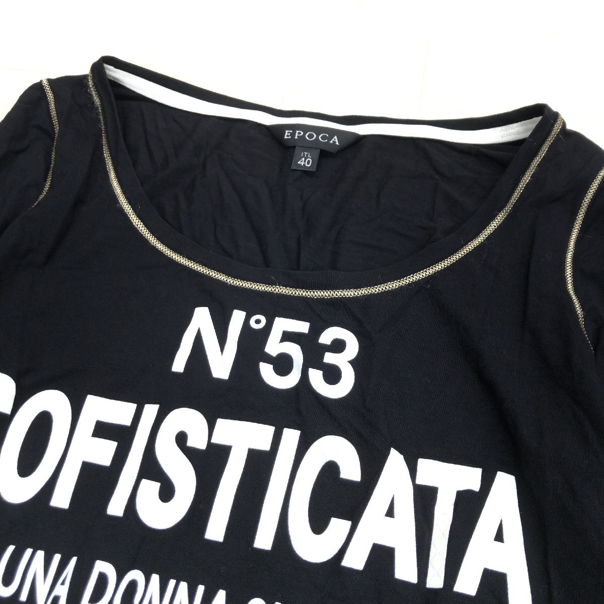 EPOCA エポカ オープンネック ストレッチ プリント カットソー 40 黒 ブラック 日本製 Tシャツ ロンT 七分袖 国内正規品 レディース 婦人
