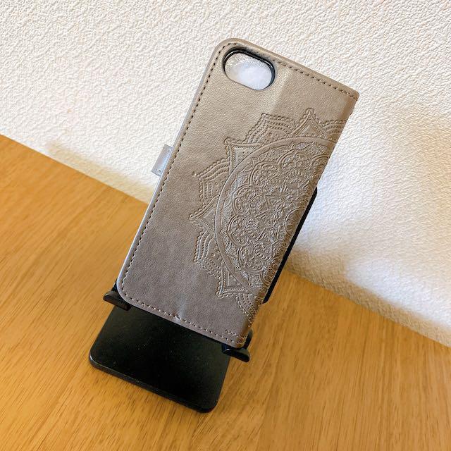 エンボス加工スマホケース 手帳型 iPhone SE2/SE3 グレー