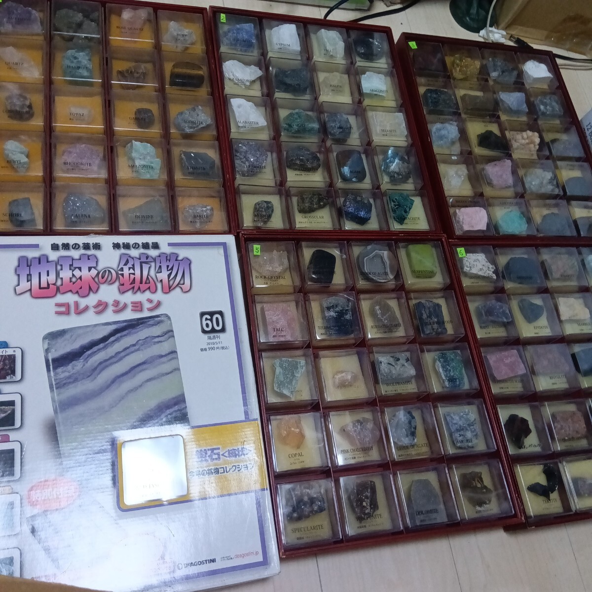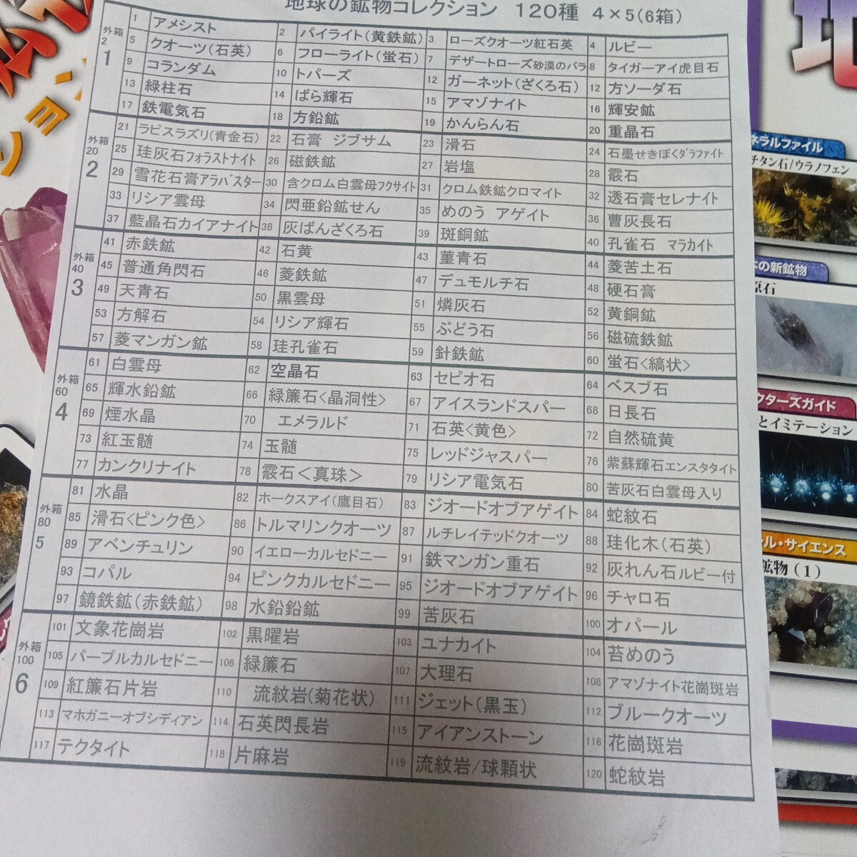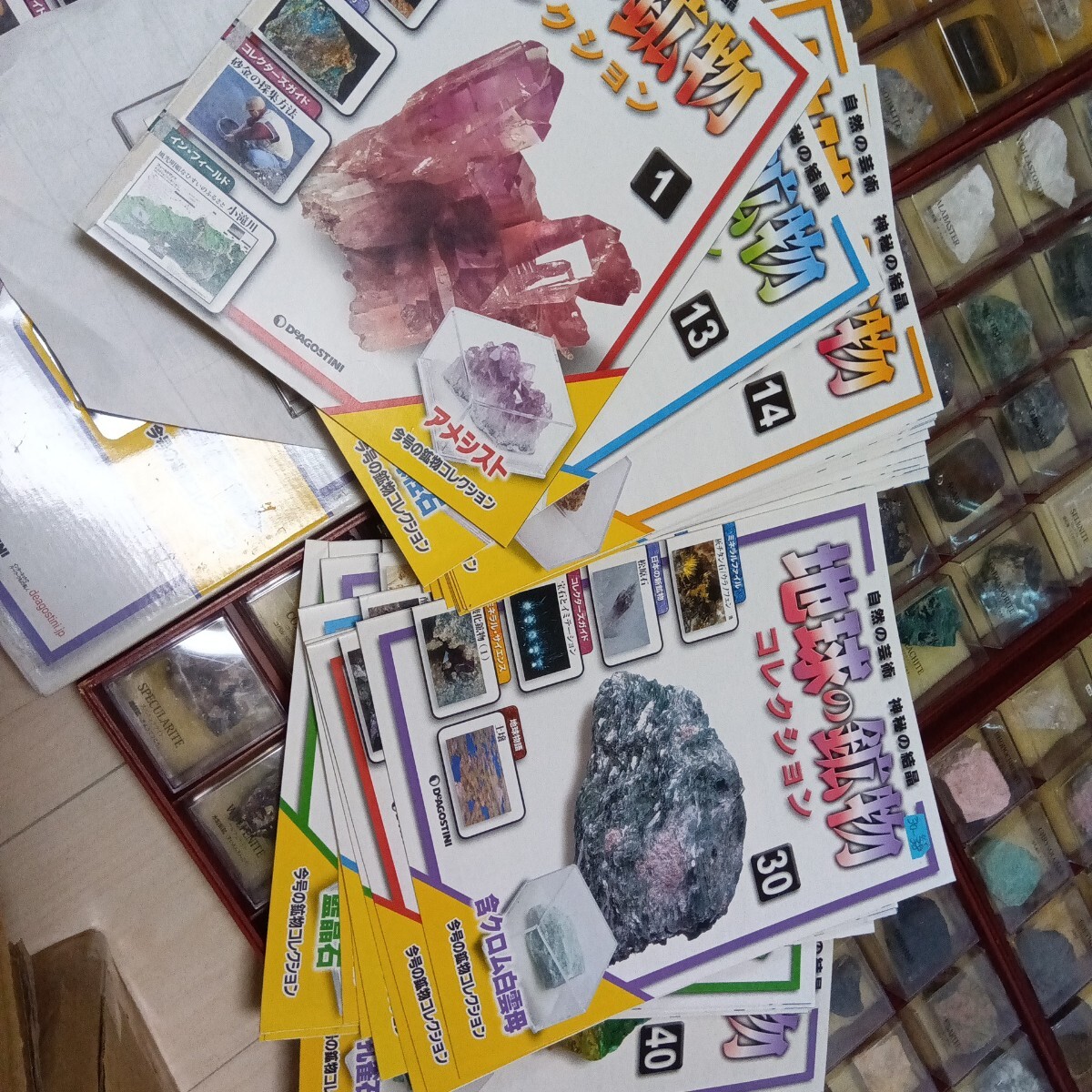 大きな鉱物120種で見応えがあります。冊子は、1.13〜25.30〜40と一部ですが、冊子紹介DVDで全冊子120冊を詳しく綺麗に見られます。120巻の一覧表で全鉱物を確認できます。