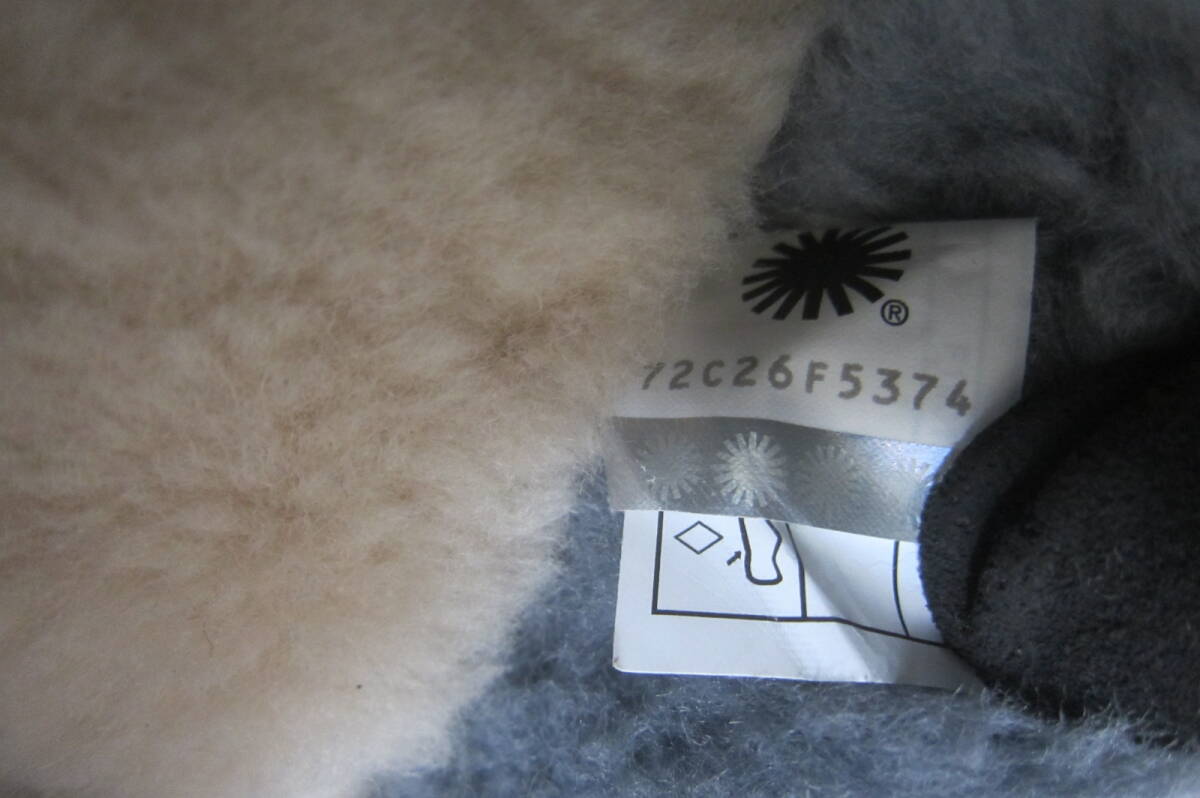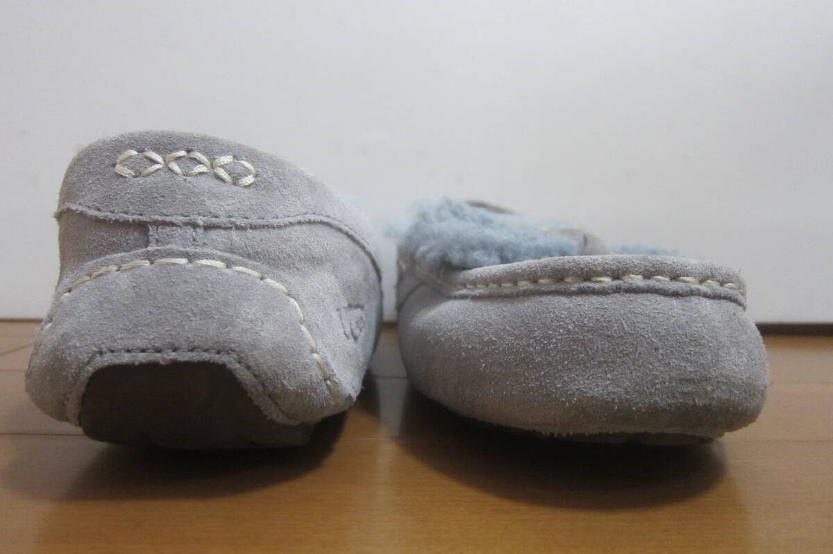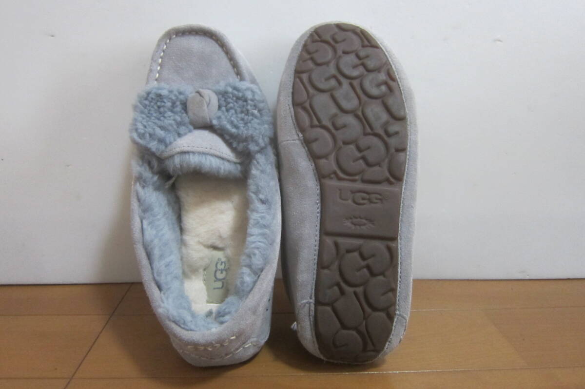 着用少 UGG アグ オーストラリア 1019758 ANSLEY FUR BOW アンスレー ファーボウ モカシンシューズ ムートン 青グレー系 25㎝ O2510A