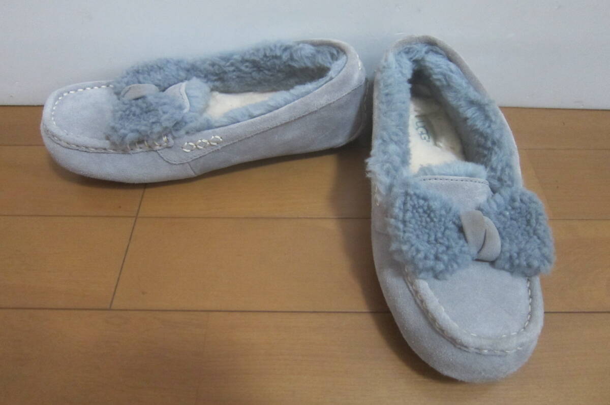 ★ ★着用少 UGG アグ オーストラリア 1019758 ANSLEY FUR BOW アンスレー ファーボウ モカシンシューズ ムートン 青グレー系 25㎝★ ★