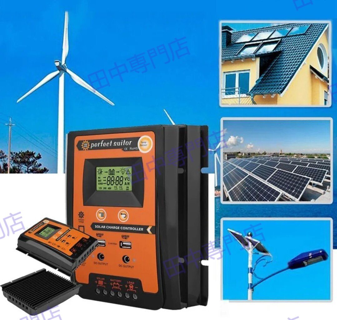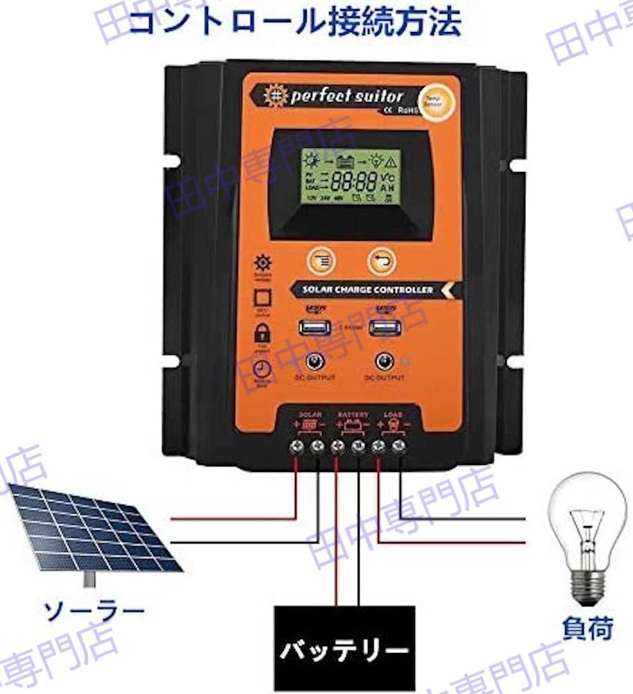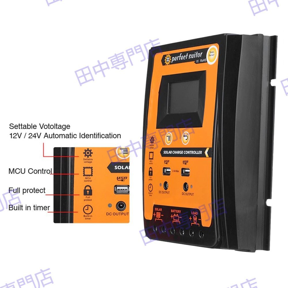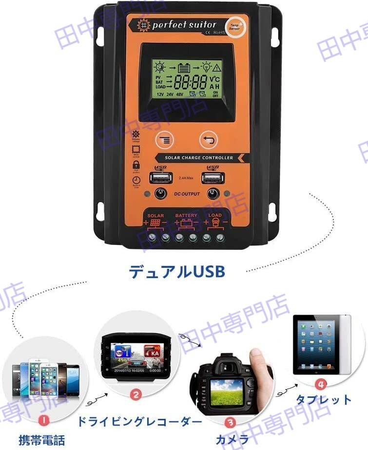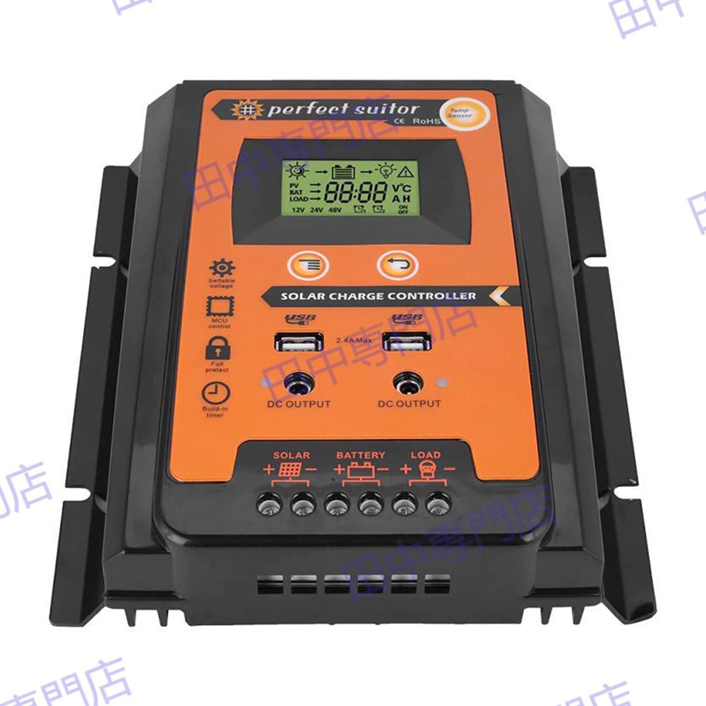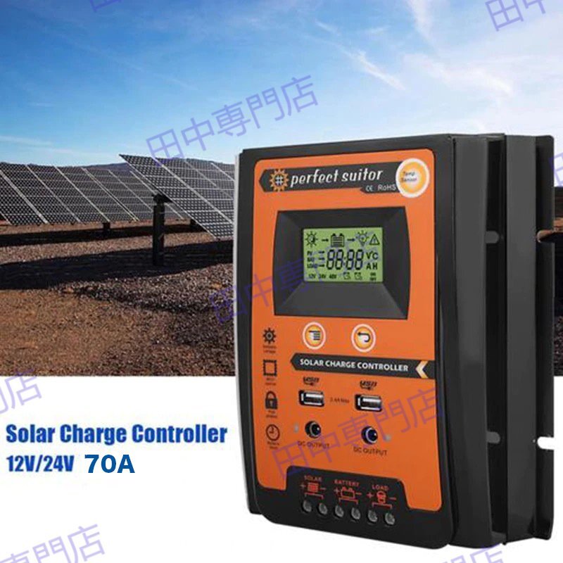 70A MPPT 12V/24V LCD ソーラーパネル チャージコントローラー デュアル USB ソーラーパネル バッテリーレギュレーター 太陽電池