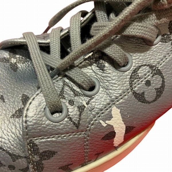【ブランド】ルイヴィトン 【ライン】マッチアップ 【商品名】ハイカット スニーカー 【型番】FD1127 【カラー】シルバー×ブラック×ホワイト 【素材】レザー 【サイズ】日本サイズ約25.5cm(表記6 1/2) 【付属品】箱、保存袋、紐 【ランク】B (使用感あり) 【状態】 本体の状態:擦れ、汚れ、染み、傷、剥がれ、中程度有り その他コメント:画像制限により表現できなかったシワやスレ、剥がれがあります。 画像の方がダメージ強い部分になります。 | |