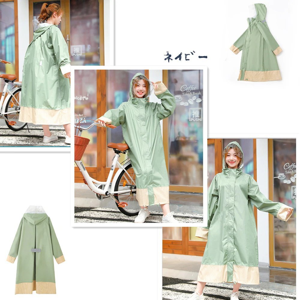 レインコート バイク レインポンチョ ロング丈 通勤 通学 防水 防風 雨具 梅雨 豪雨 軽量 男女兼用 115cm(グリーン) 434gr