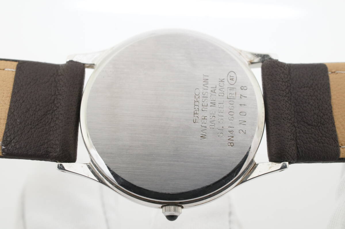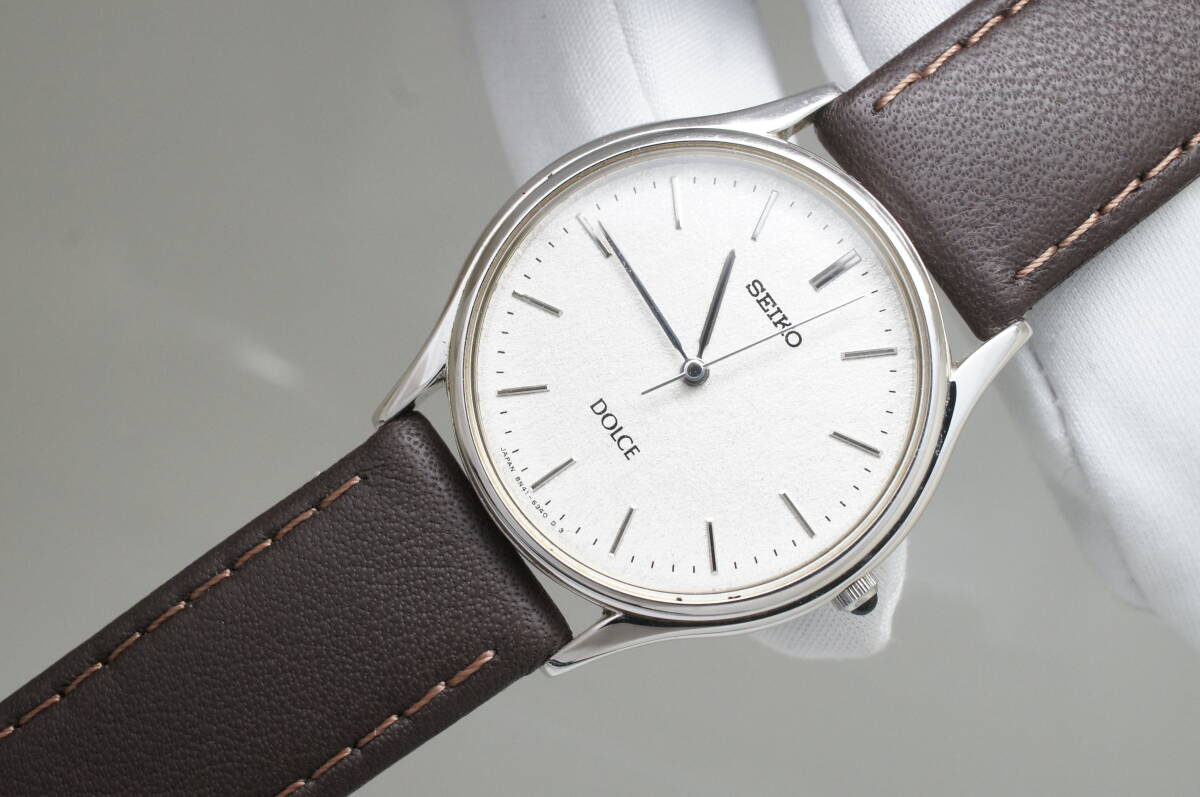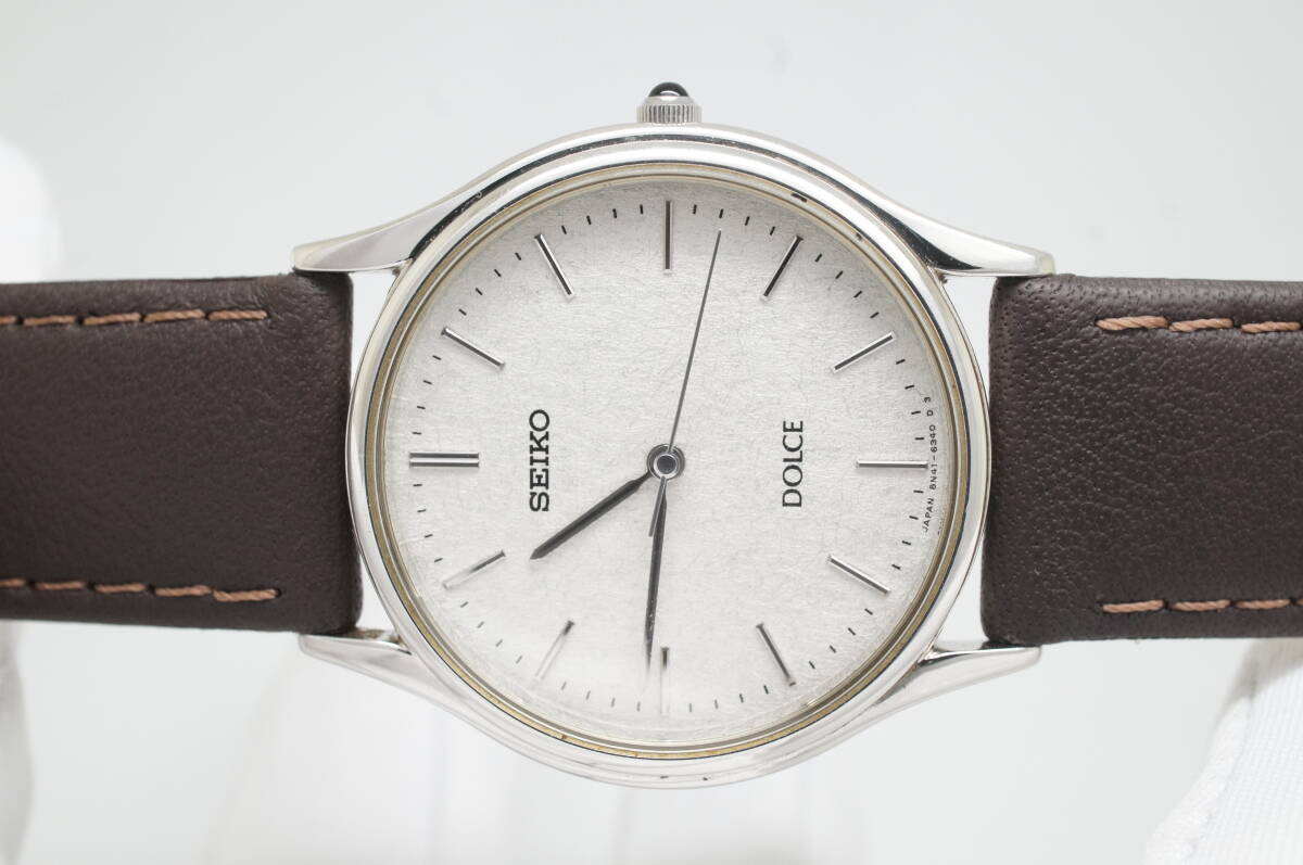 Z110●作動良好 未使用ベルト 美品 SEIKO セイコー DOLCE ドルチェ 8N41-6060 1992年製 ラウンドケース型 メンズ腕時計 シルバー クォーツ