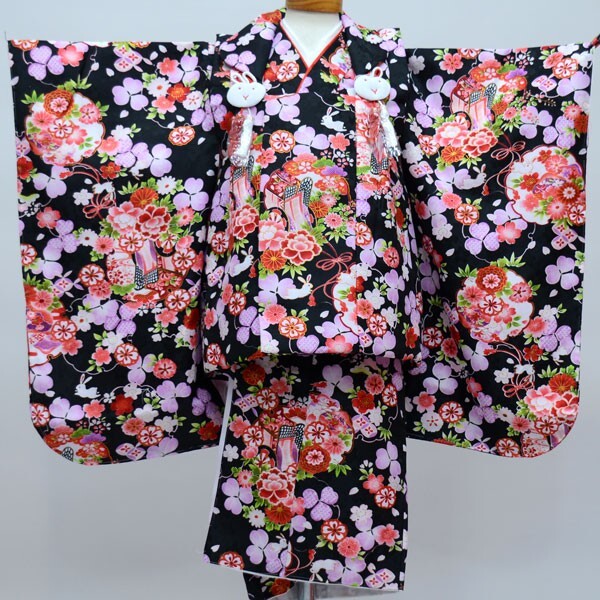 項目 | 三歳被布着物フルセット ・着物 ・長襦袢 ・被布コート ・巾着 ・髪飾り ・草履 ・付け紐2本(着物縫付済) ・着付け説明のご案内(ご要望のお客様のみ、詳しくは以下明記しております) 以上フルセット |