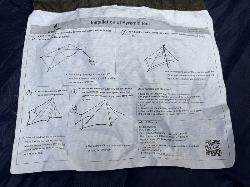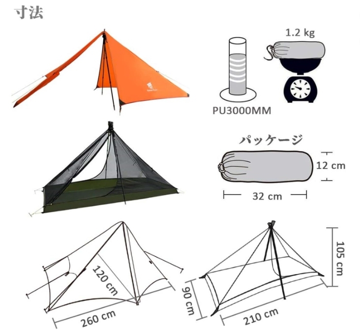 ★GEERTOP ギアトップ ピラミッドテント ソロテント★