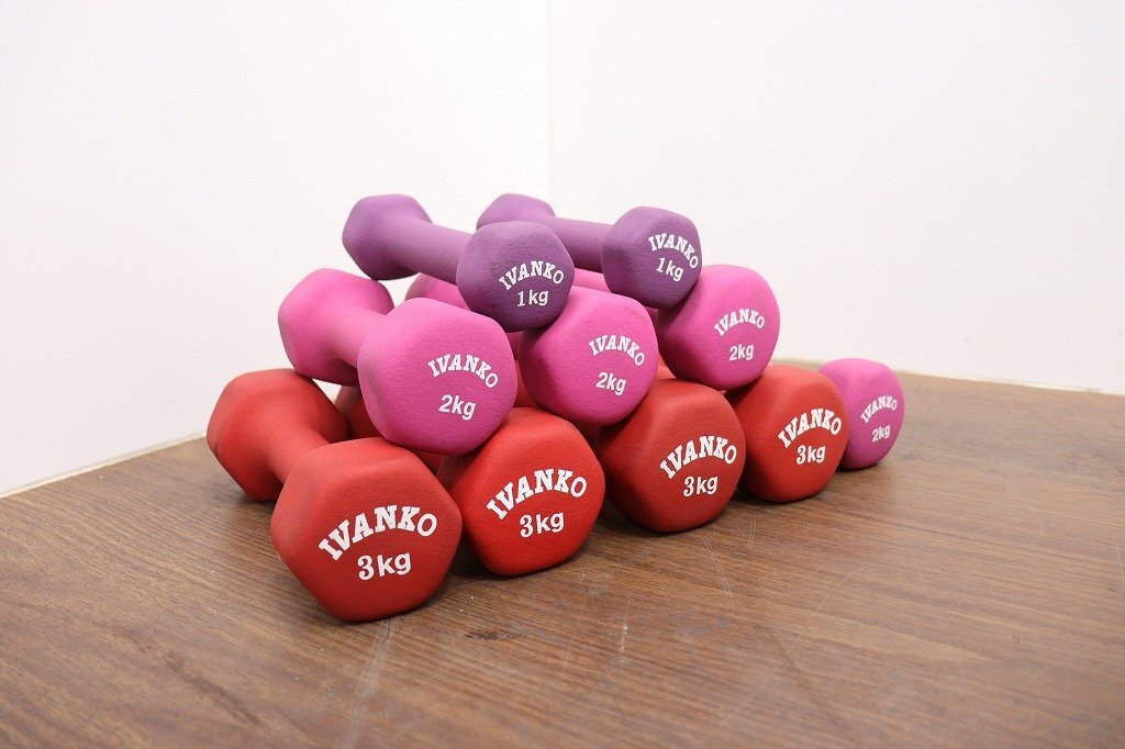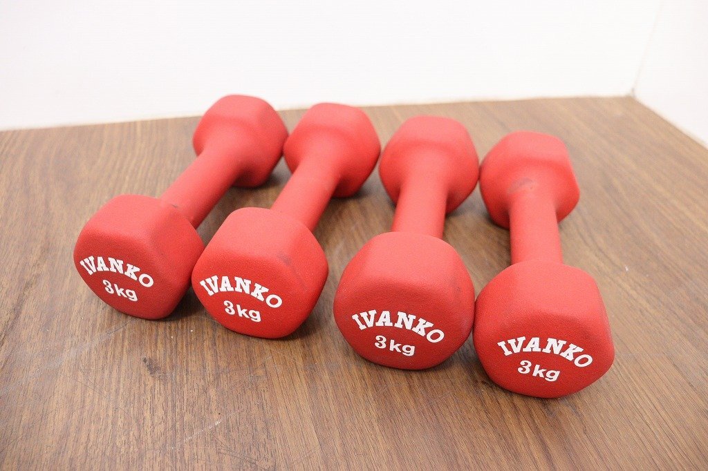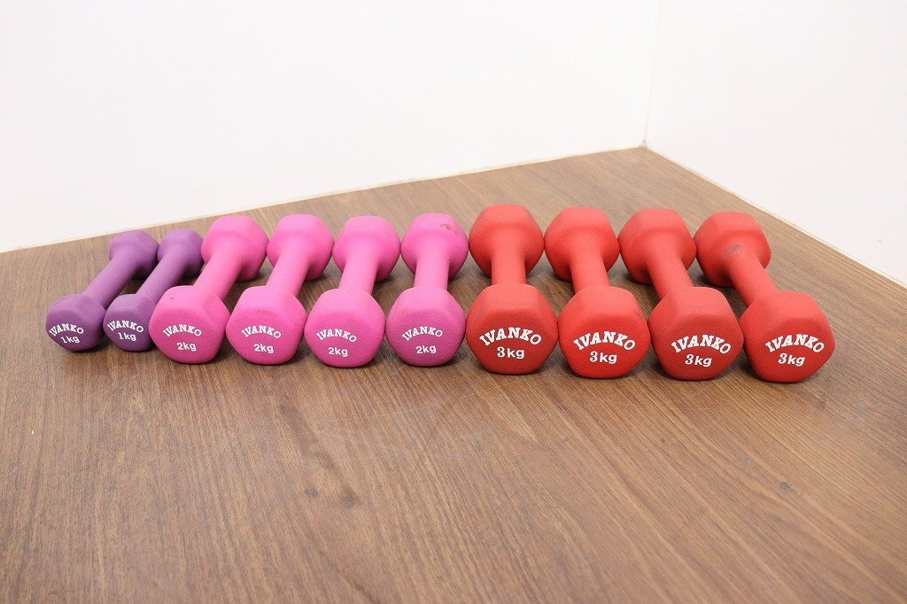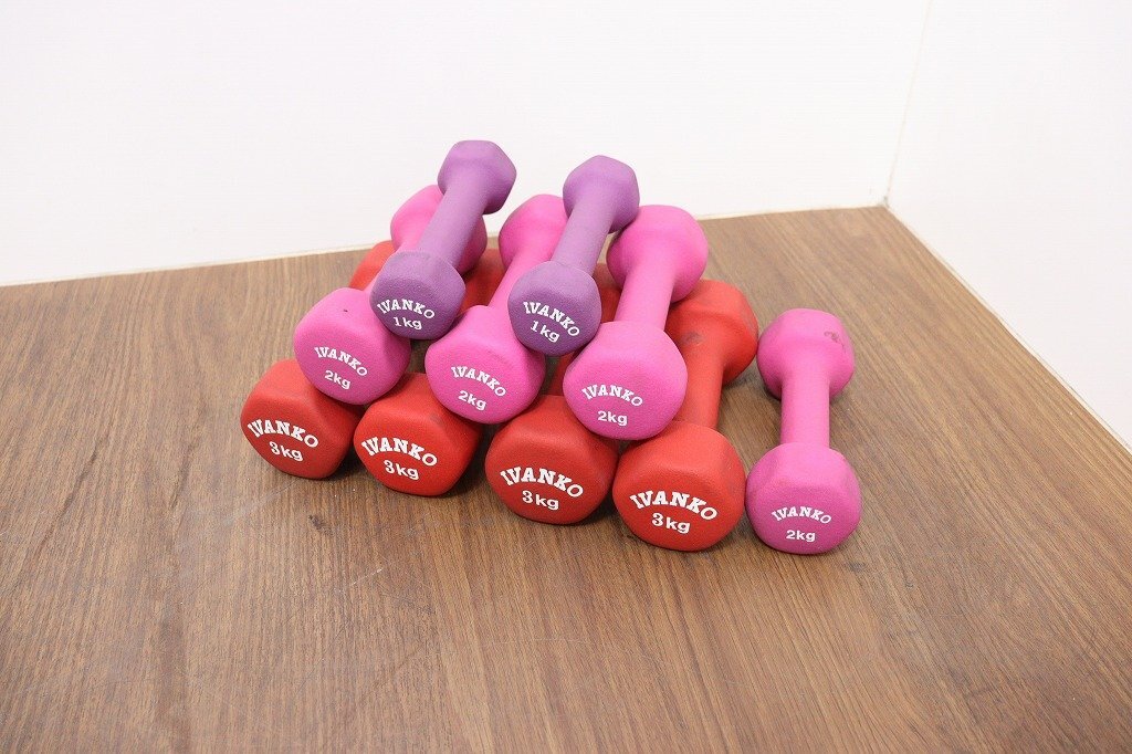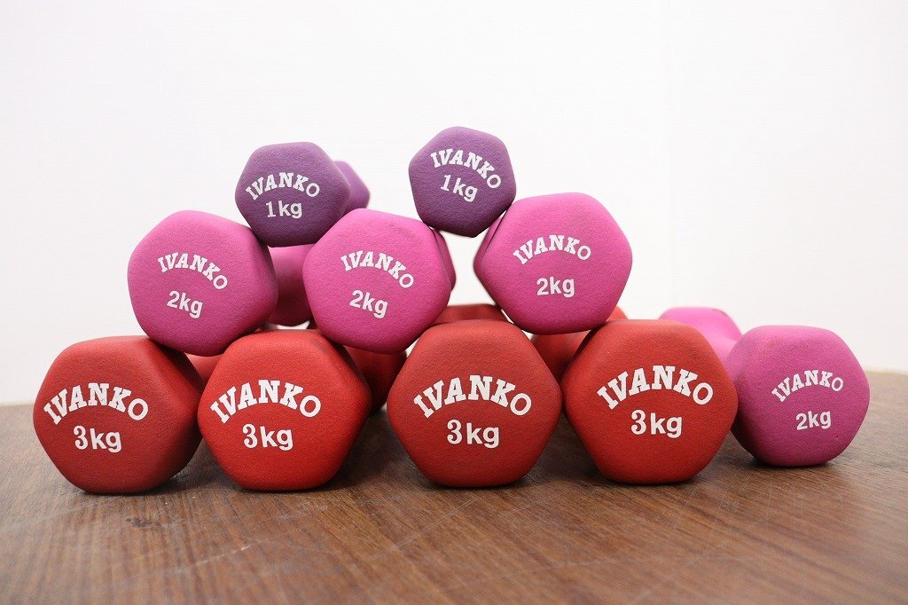 IVANKO/イヴァンコ◆カラーダンベル◆固定ダンベル◆計22kg◆エクササイズ◆筋トレ◆3kg×4/2kg×4/1kg×2◆現状品 | ||