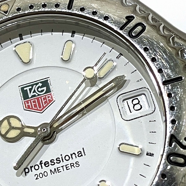 【ブランド】 タグホイヤー 【商品名】 プロフェッショナル 【型番】 WG1110-KO 【ムーヴメント】 クォーツ 【材質】 SS 【サイズ】 ケース幅(リューズを含まず)×厚さ×腕回り(内径)×重さ 約35.0mm×8.8mm×17.0cm×107.6g 【カラー】 ホワイト文字盤 【付属品】 なし 【ランク】 B (使用感あり) 【状態】 風防:擦れあり 文字盤:僅かに劣化あり 針:劣化あり リューズ:小キズあり ケース:小キズあり、少し打痕あり ベゼル:小キズあり ベルトのキズ:小キズあり ベルトの伸び:やや伸びあり ※6ヶ月保証(注1 | |