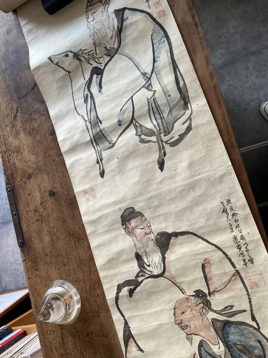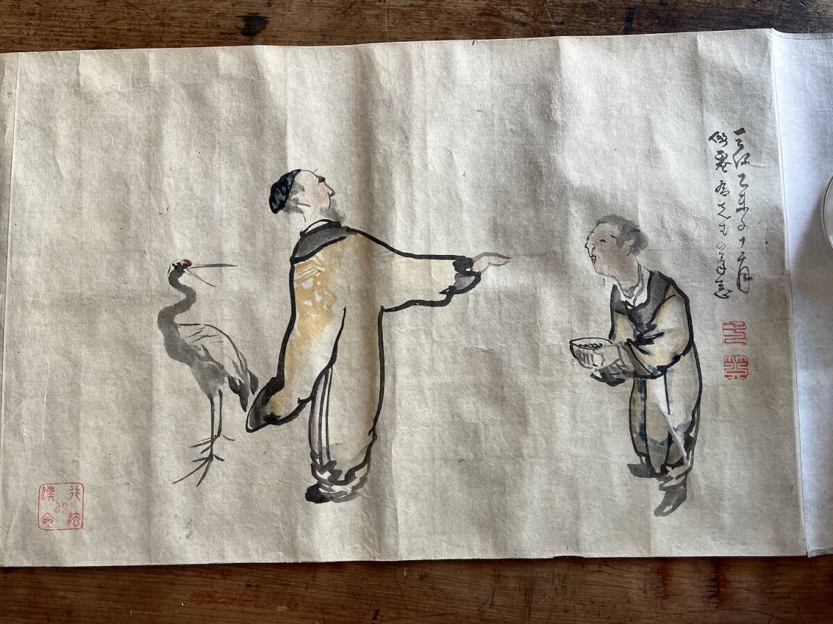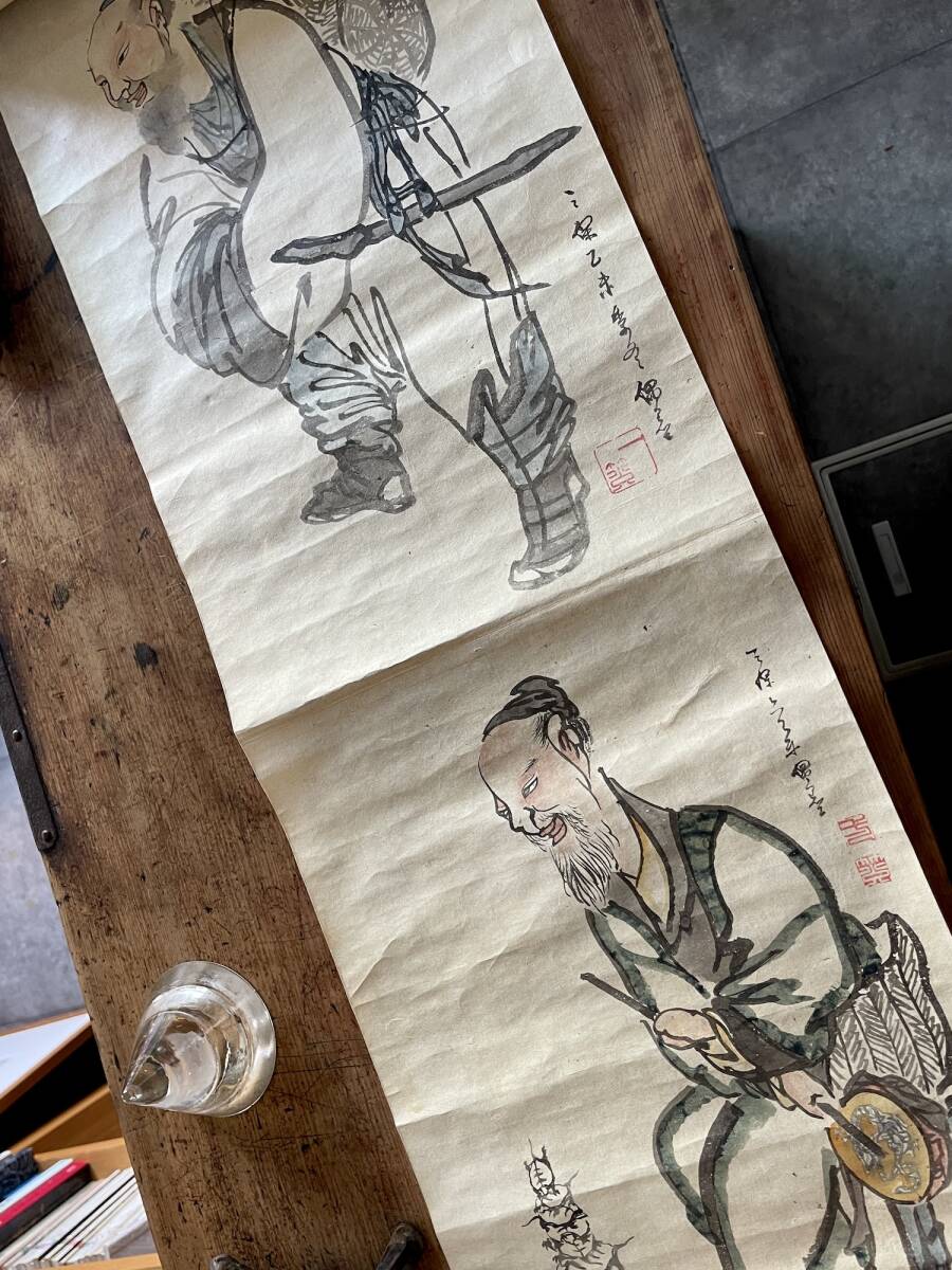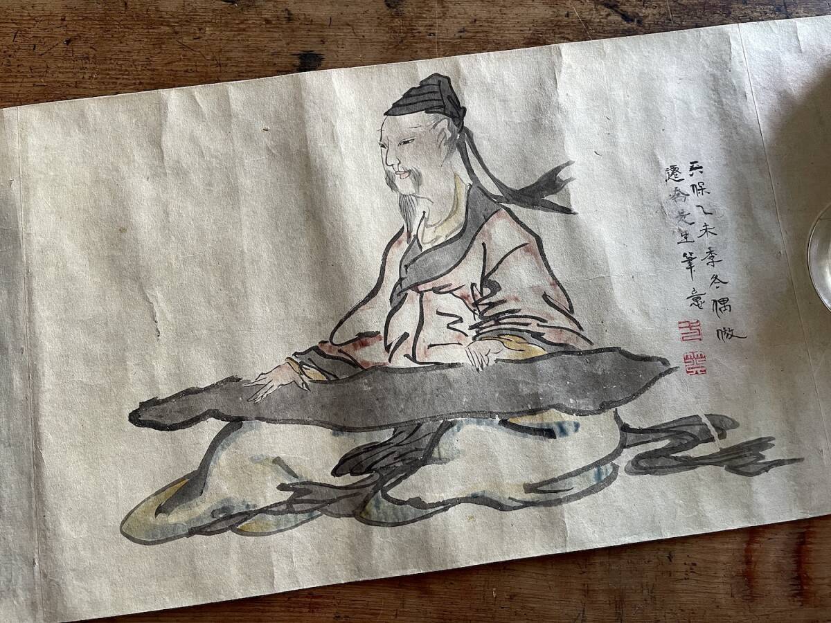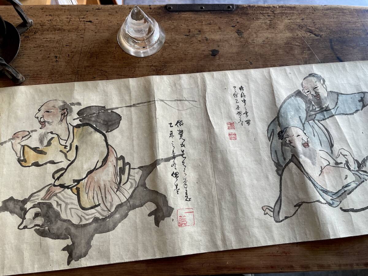 一簣筆「十六唐人物図巻物」肉筆 紙本 着色 巻物■美人画 江戸絵画 中国絵画 骨董 古美術■a824