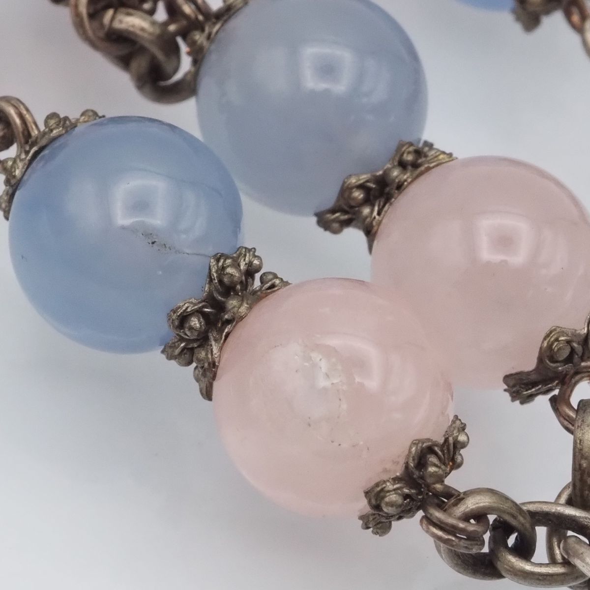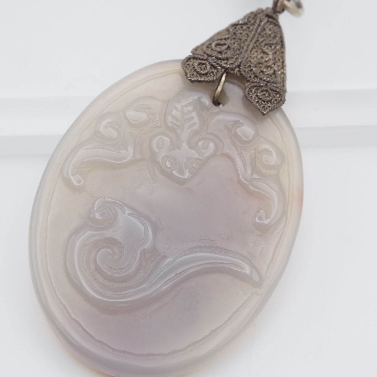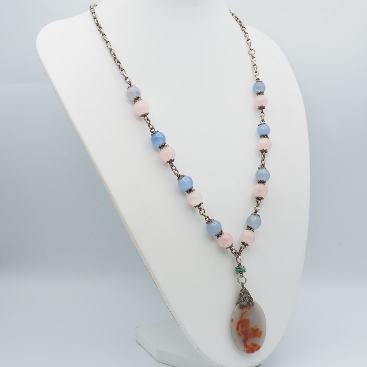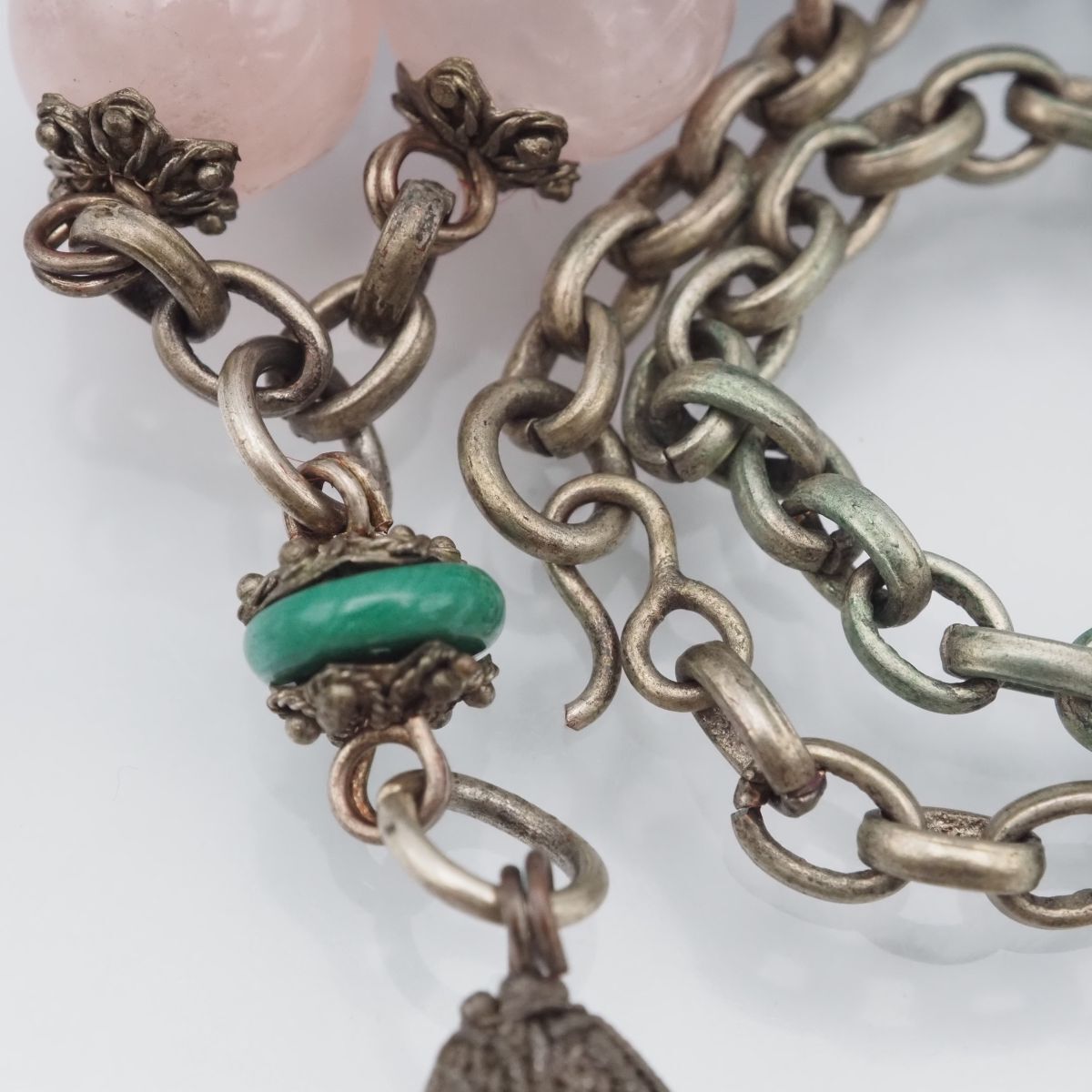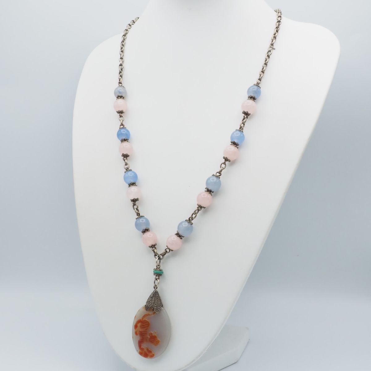 F771 天然石 ローズクォーツ ネックレス 虎彫刻 デザイン アンティーク