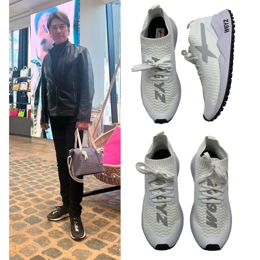 【サイズ選択】定価3.6万円■LEON掲載!日本限定物■W6YZ■ロゴプリントニットスニーカー■ホワイト/白■ウィズ■ SOK■川﨑麻世さん愛用