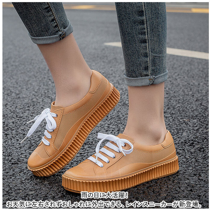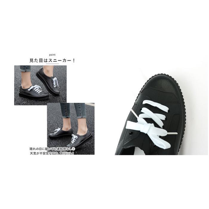 商品説明 | ・・雨の日に大活躍!お天気に左右されずおしゃれに外出できる、レインスニーカーが新登場。 ・【見た目はスニーカー!】 ・晴れの日に履いても違和感なし◎天気が不安定な日や、旅行にも! ・【フィット感を高めるシューレースタイプ】 ・紐の結び具合で、多少のサイズ調節が可能。シューズと足が一体化するような、心地良い着用感。 ・【水や汚れに強い素材】 ・耐久性があり、水や汚れに強いPVC素材を使用。雨の日も気にせず履けて、お手入れもサッと拭き取るだけ◎(※完全防水ではありません。) ・【歩きやすさが向上】 ・安定感のある柔らかなソールが衝撃を吸収し、足元に負担がかかりにくい!足の動きに合わせて柔軟に曲がる、屈曲性もポイント。 ・【取り外しできるインソール】 ・ソフトな質感のインソールを装備。取り外してお手入れできるから衛生的。 ・【滑りにくく安全】 ・底面に細かな凹凸が刻まれた滑りにくい仕様。濡れた路面でも安心。 |