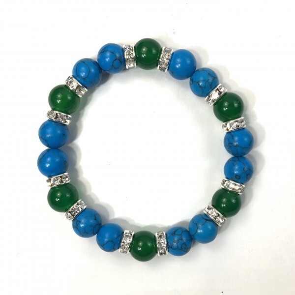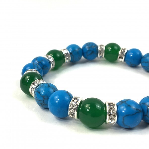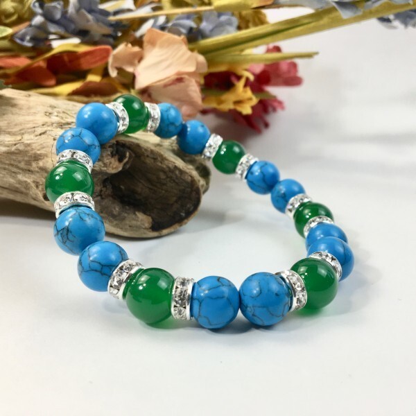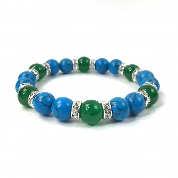パワーストーン ターコイズ×緑瑪瑙 ブレスレット (シルバー) 10mm メンズ・レディース 成功 繁栄 安全