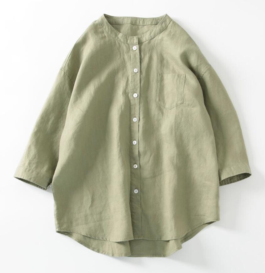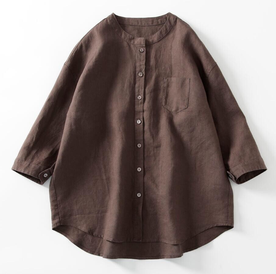 新品 秋 冬 M-2XLサイズ春夏新品 ゆったり 大きいサイズ 綿麻シャツ リネン 大人 7分袖 シャツブラウス 麻混 トップスベージュ