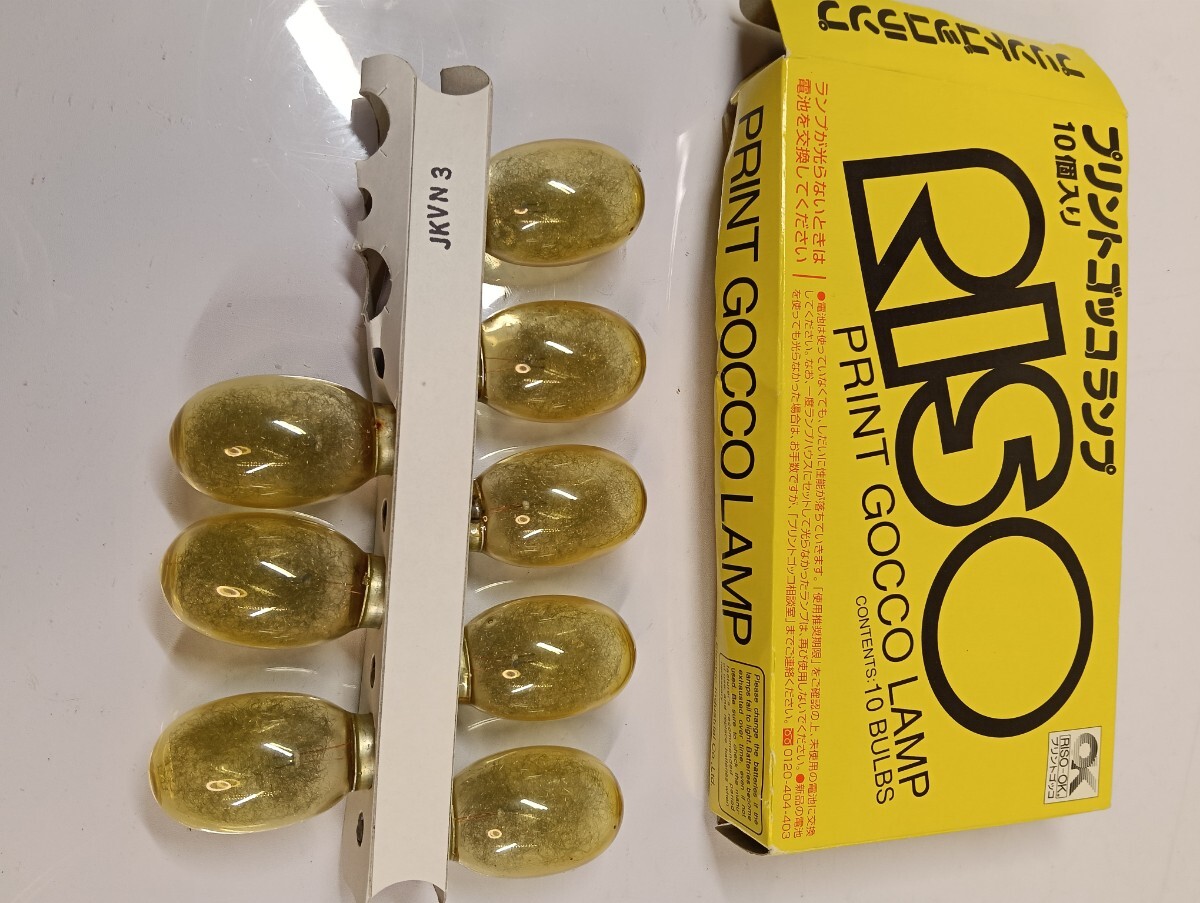 ・プリントゴッコランプは、外箱には「10個入り」と記載がございますが、現状は写真の通り8個となっております。