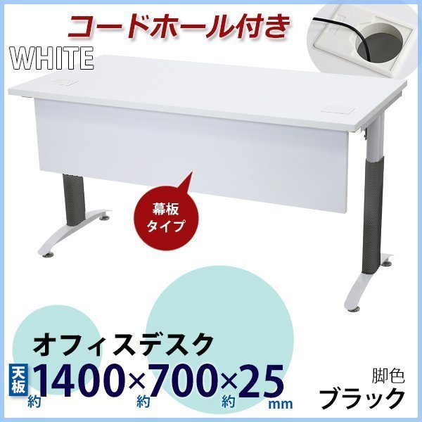 商品名 | 送料無料 オフィスデスク デスク 幕板付 コードホール付 約W140×約D70×約H75.5 約W1400×約D700×約H755 白 平机 ワークデスク 事務机 会議テーブル パソコンデスク PCデスク 長机 会議机 事務デスク オフィステーブル 会社 事務所 会議用 ホワイト 配線穴 t016140whhl |