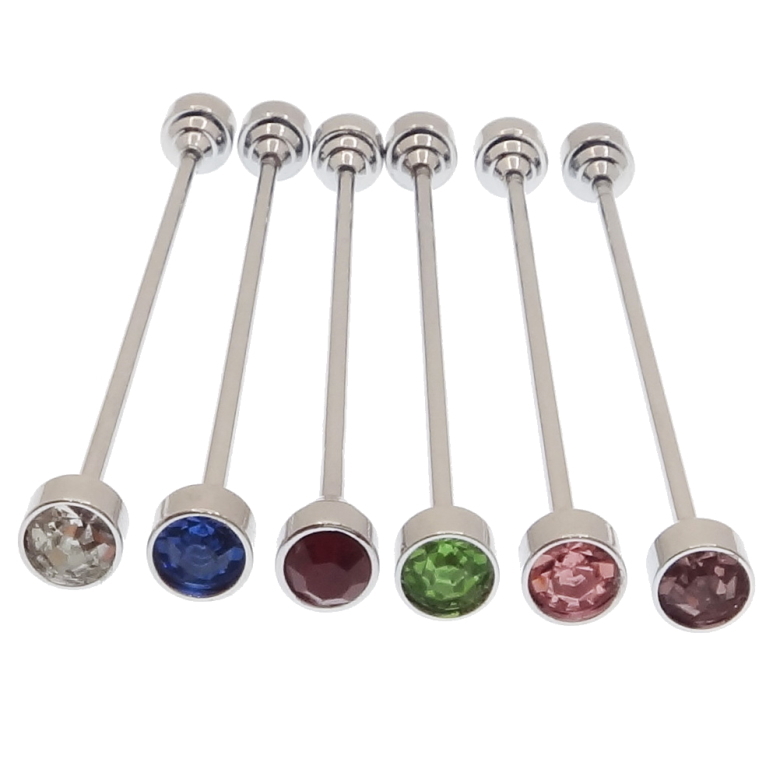 シルバーの細身でシンプルなバーに、全6色のストーンが選べます。
