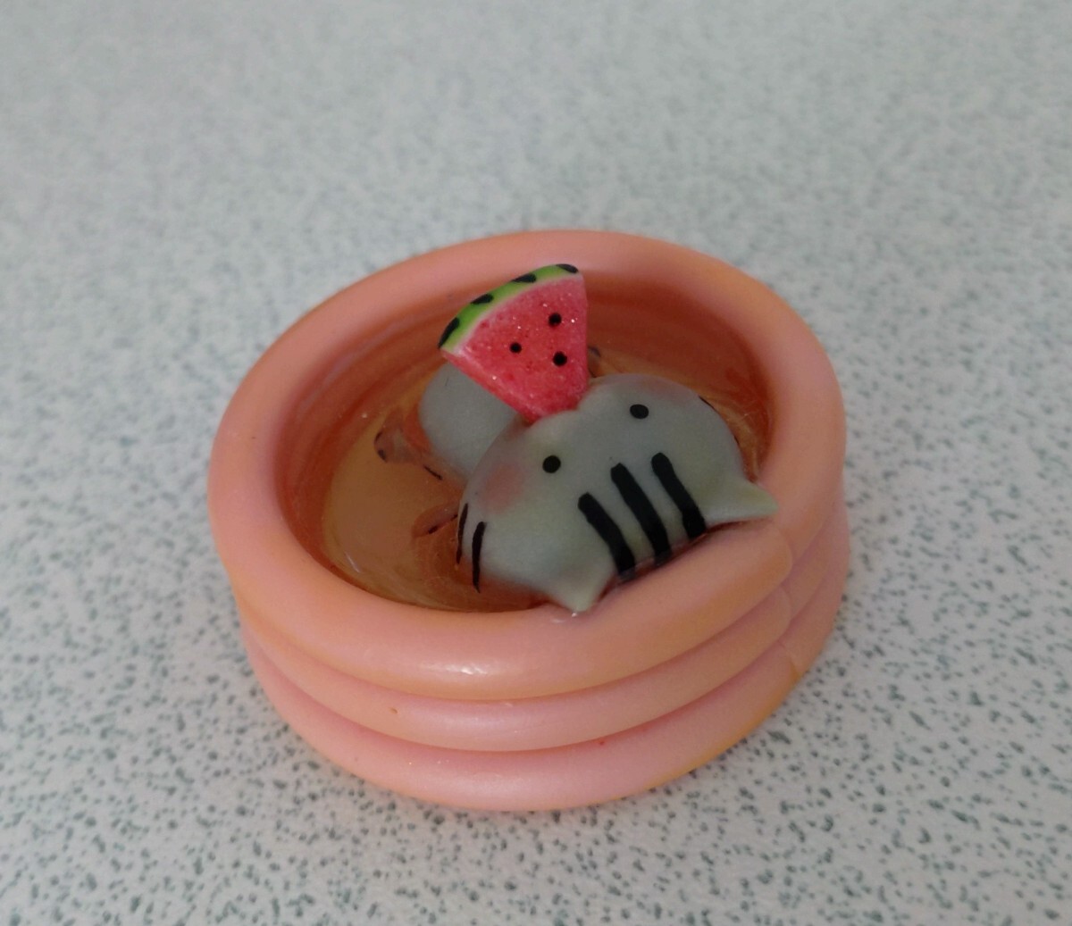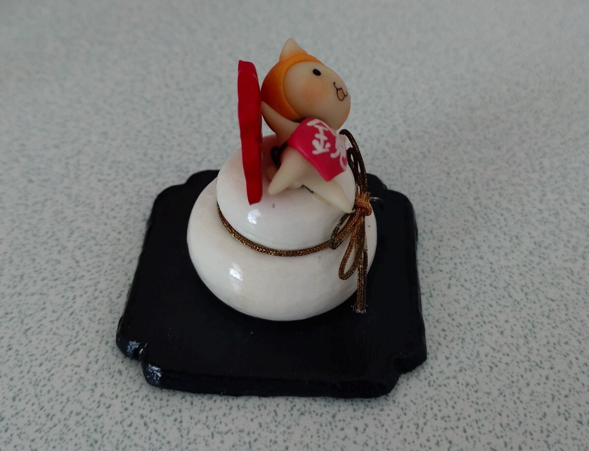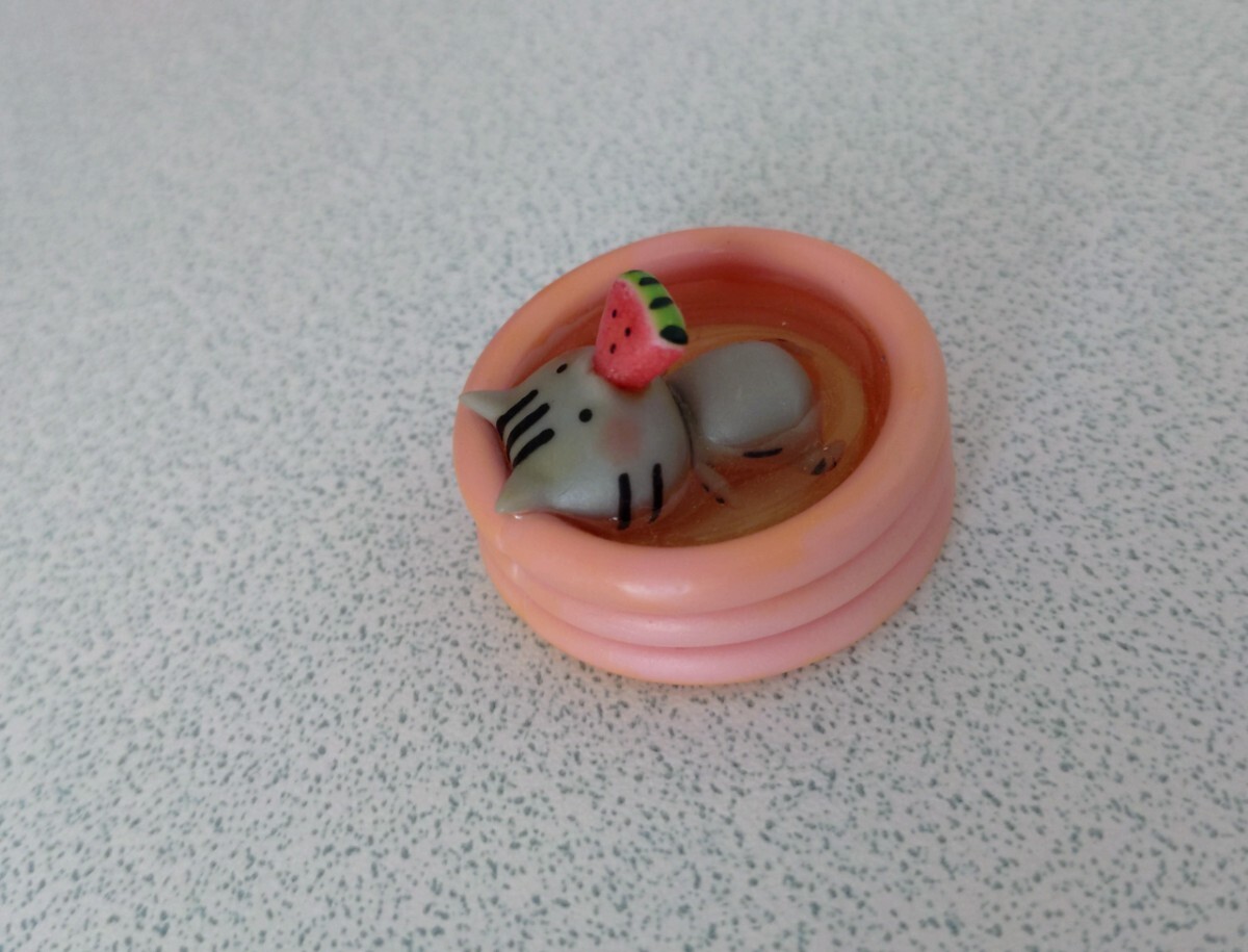ハンドメイド ミニチュア★樹脂粘土 猫フィギュア (鏡餅、プール、芸術の秋、金のうんち取ったどー) 置物です。