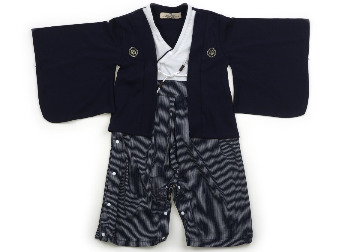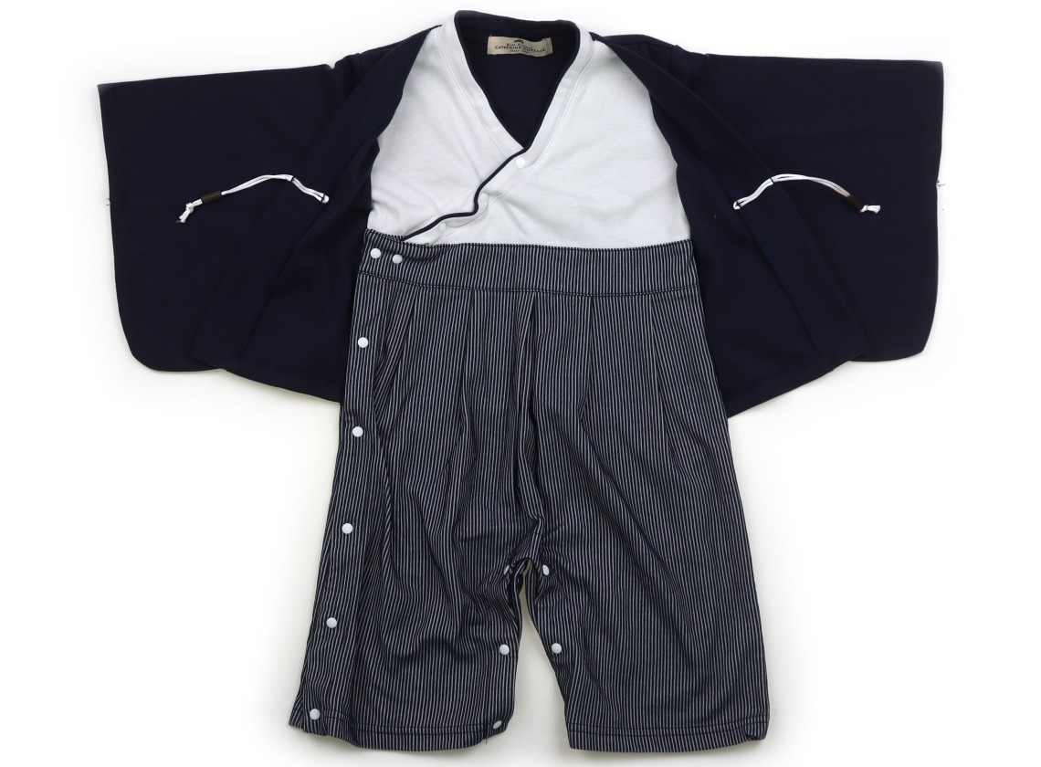 袴デザインでカバーオール型です。カットソー素材。胸の紐部分が色移りしたようなピンクのシミがありますが、まだまだお使い頂けそうです。