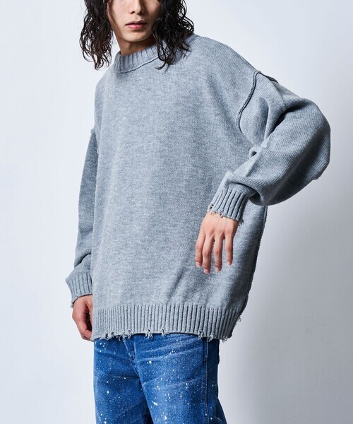 参考商品名:限定展開 ルーズフィット ダメージ加工 クルーネックニット/セーター