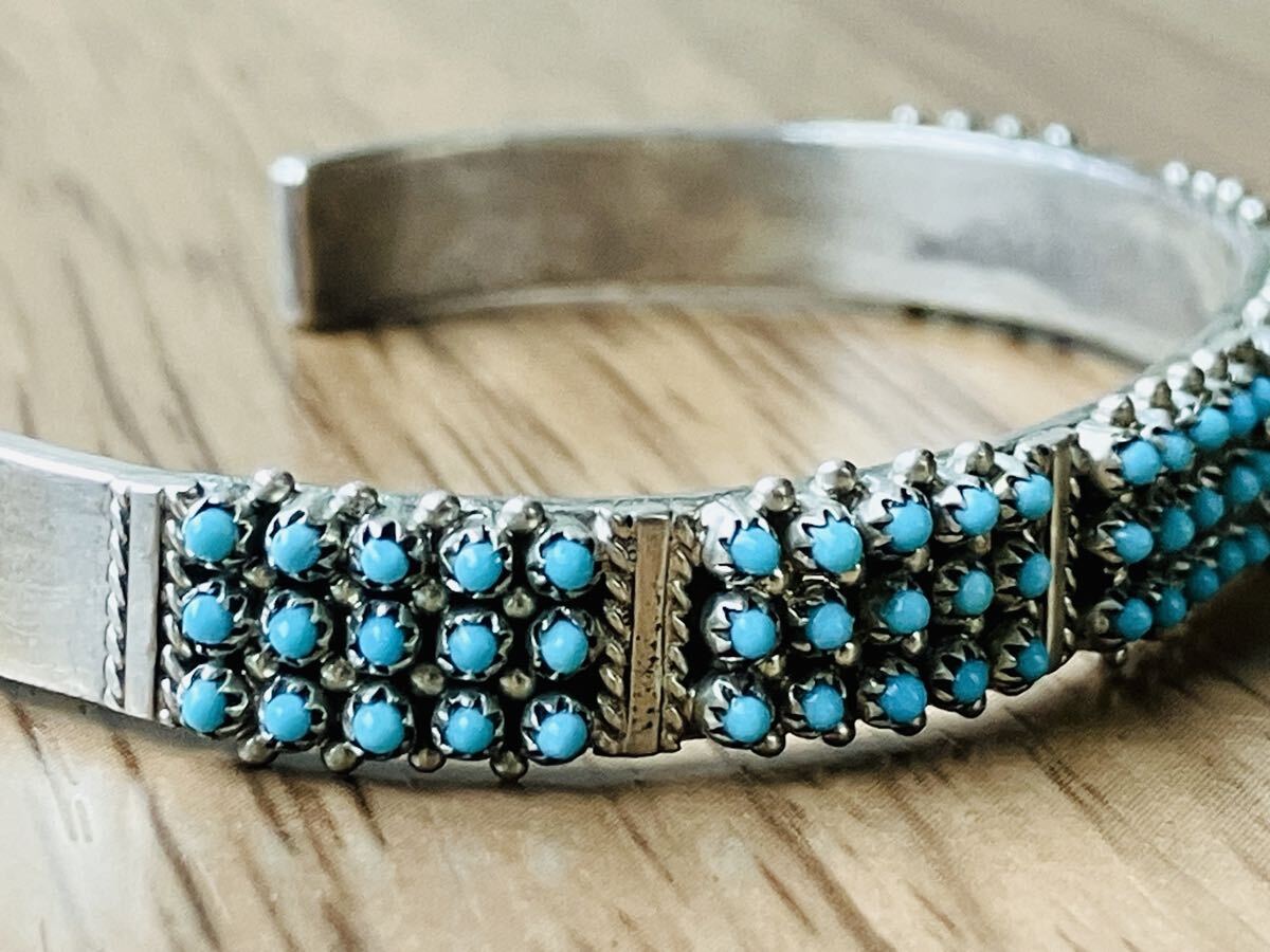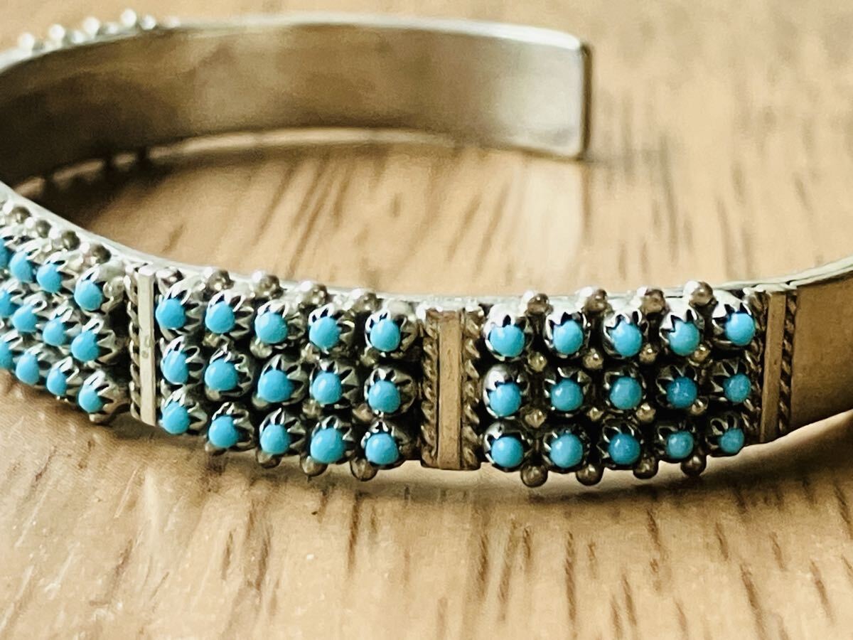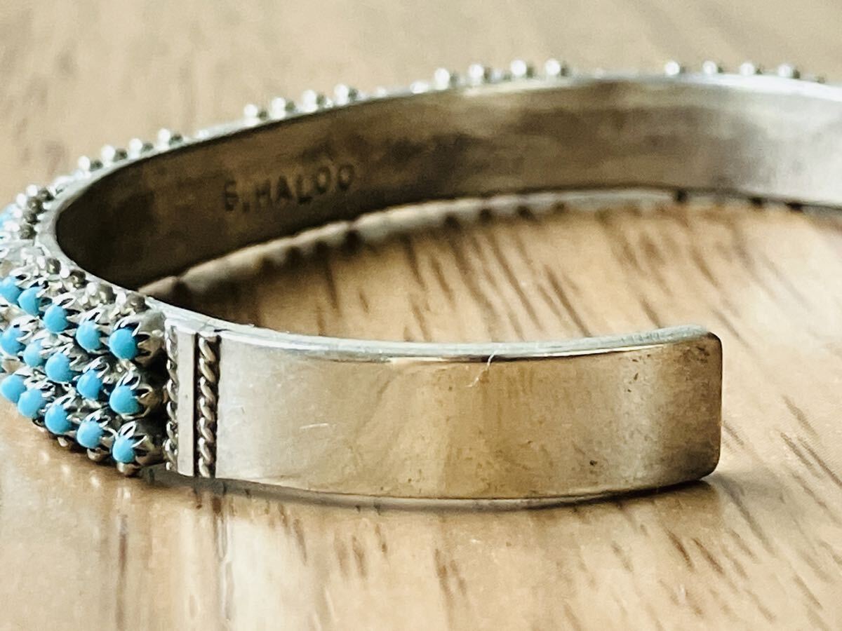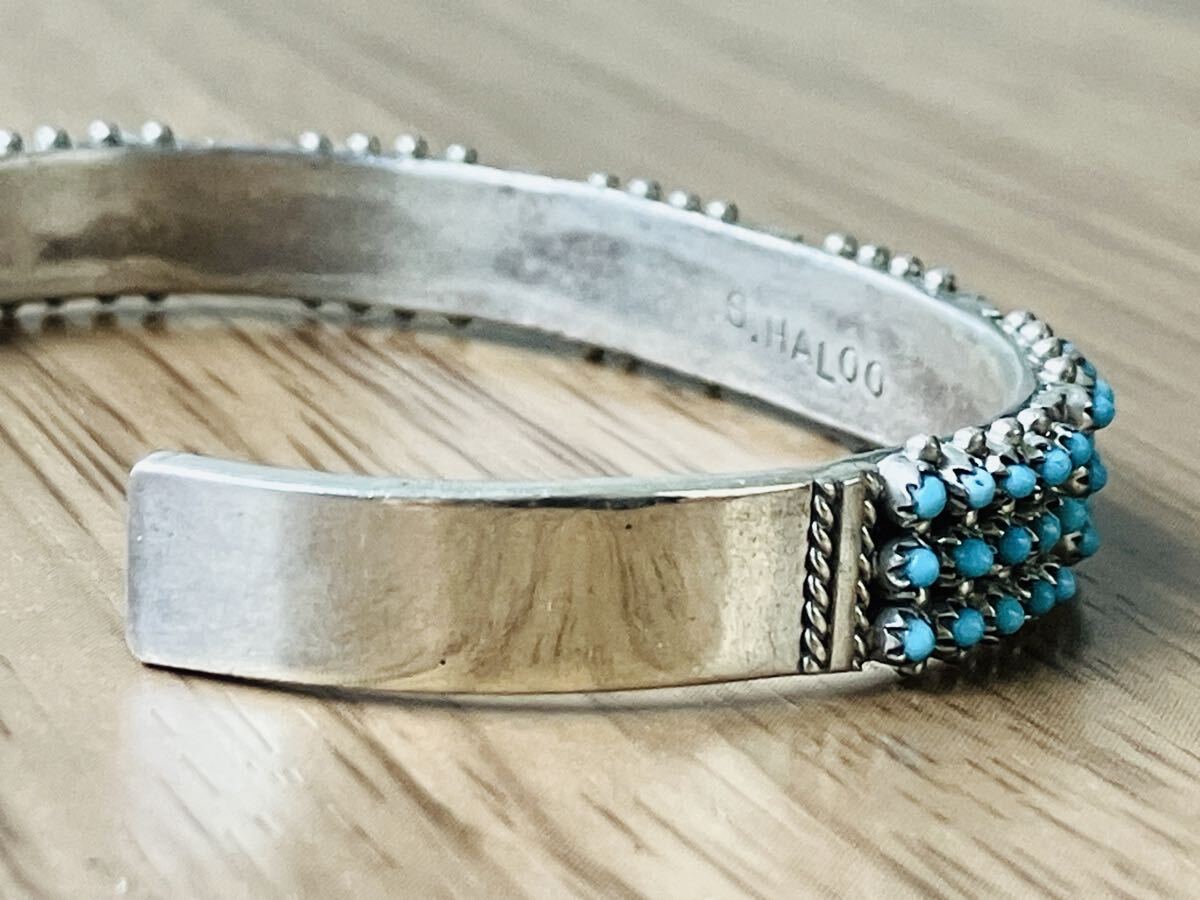 ネイティブアメリカン、ズニ族(ZUNI)の銀細工職人Stephen Haloo (スティーブン・ハルー)氏制作のバングルです。