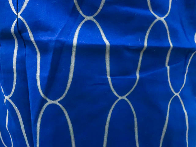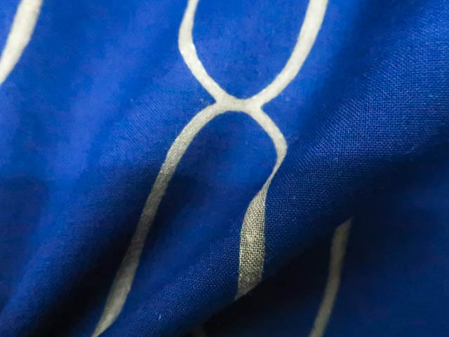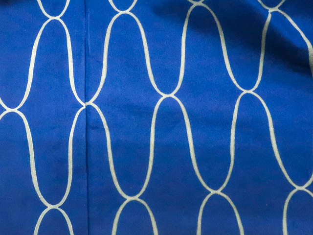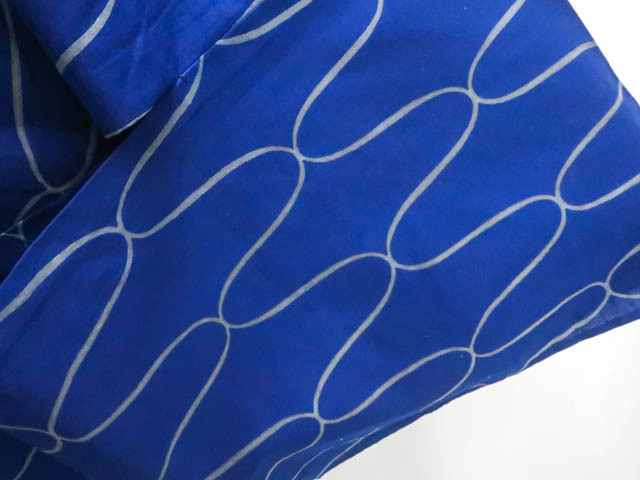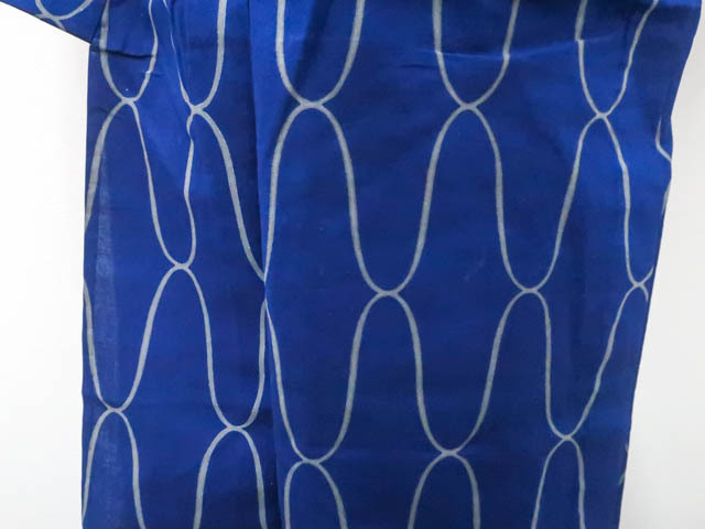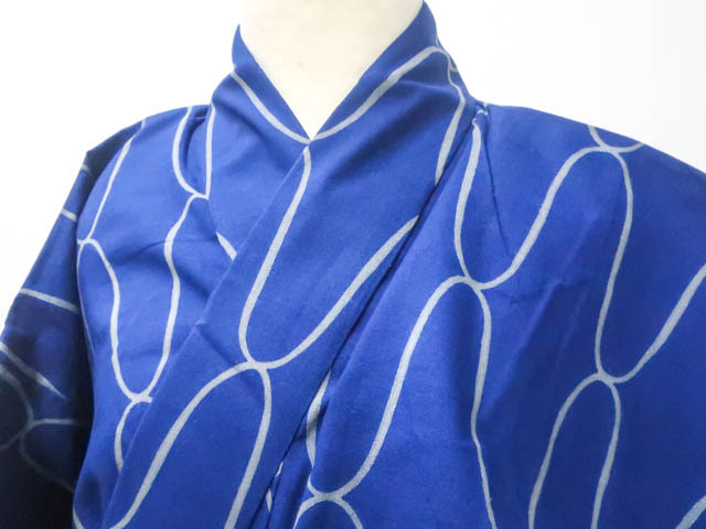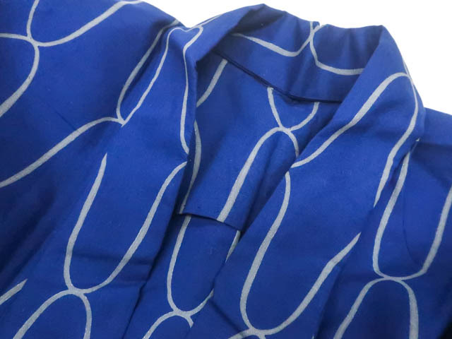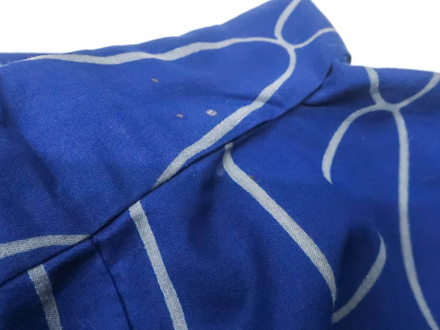 肩当付きです。リサイクル商品のため、衿・右肩後ろ下に薄汚れがございますがご着用いただけると存じます。 地色は紺です。 1枚目の画像が近いお色かと思われます。 素材は綿です。 |