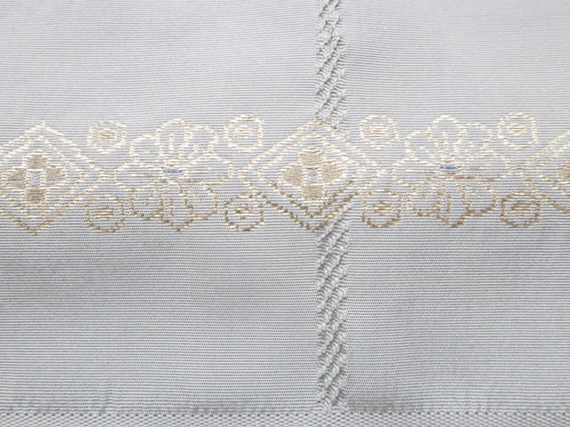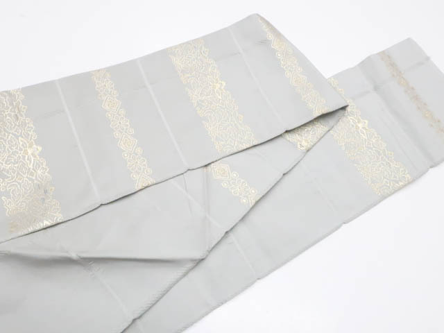 リサイクル商品でございますので太鼓薄しみとたれ先赤い汚れ、無地場薄しみがございますがご使用いただけるかと存じます。 地色は 灰です。 1枚目の画像が近いお色かと思われます。 素材は正絹です。 |