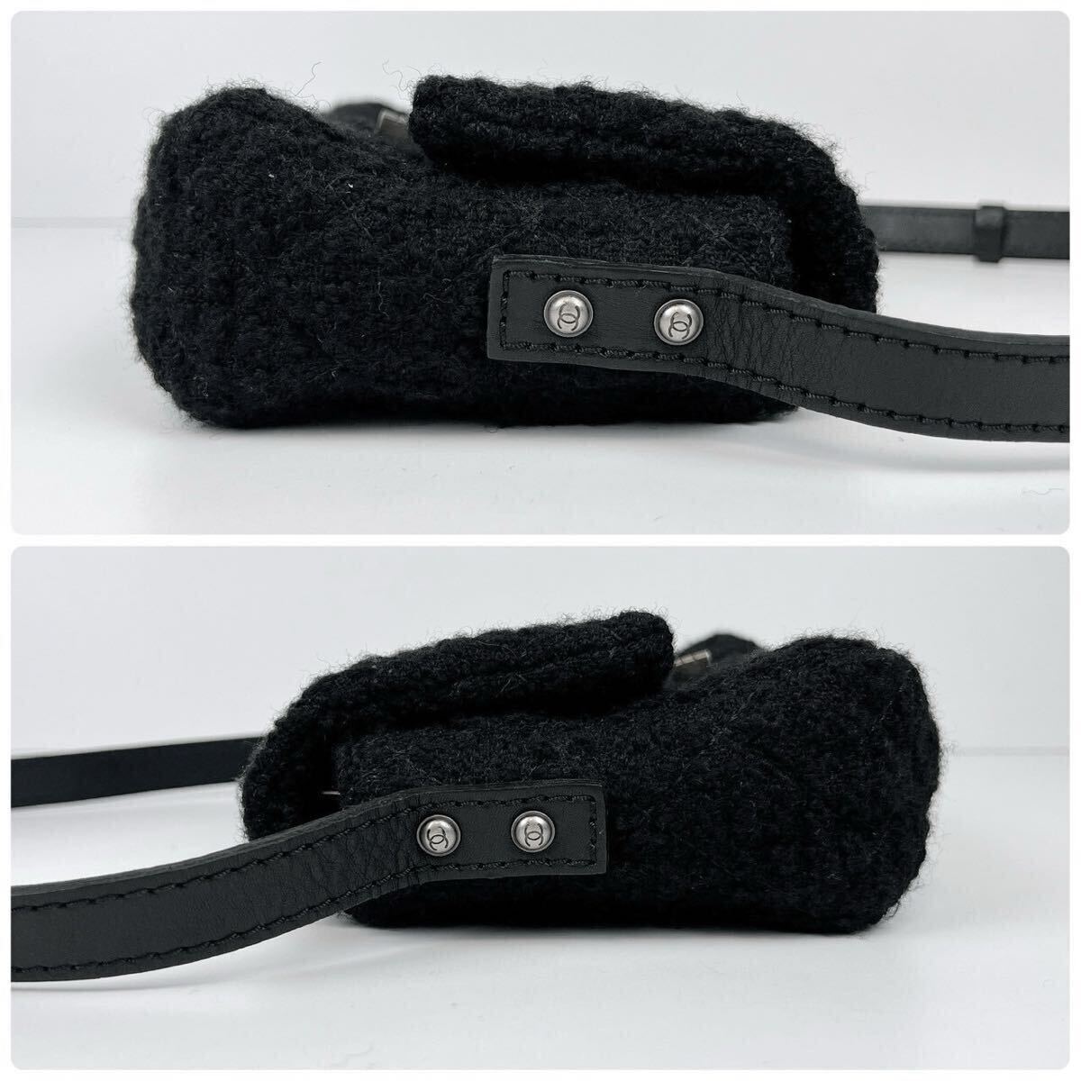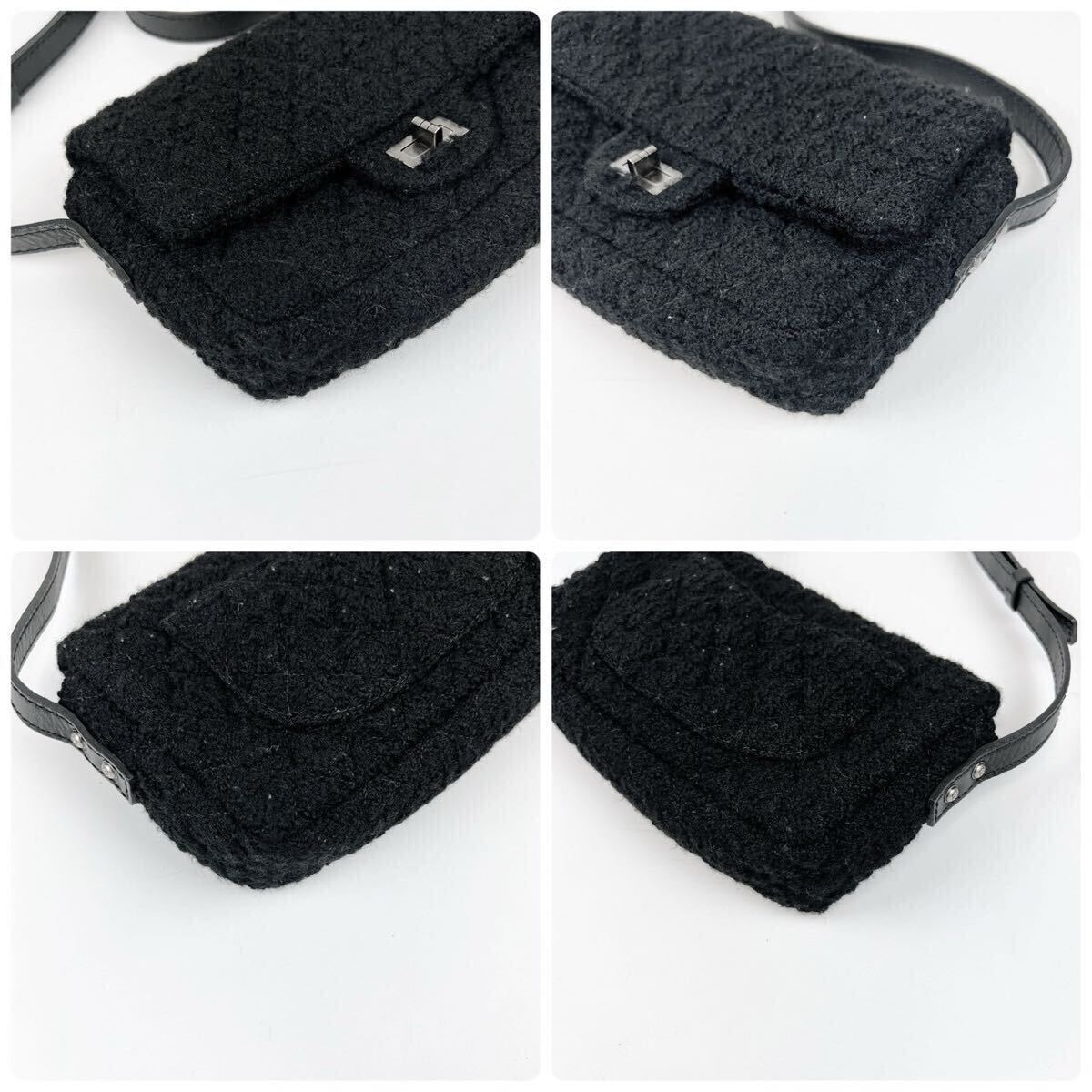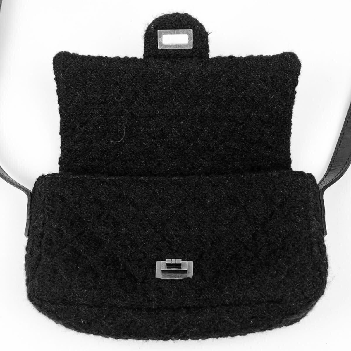 1円 CHANEL ◆未使用保管品◆ シャネル 2.55 ツイード マトラッセ ショルダーバッグ 斜めがけ レザー ブラック 13番台 ココマーク シルバー