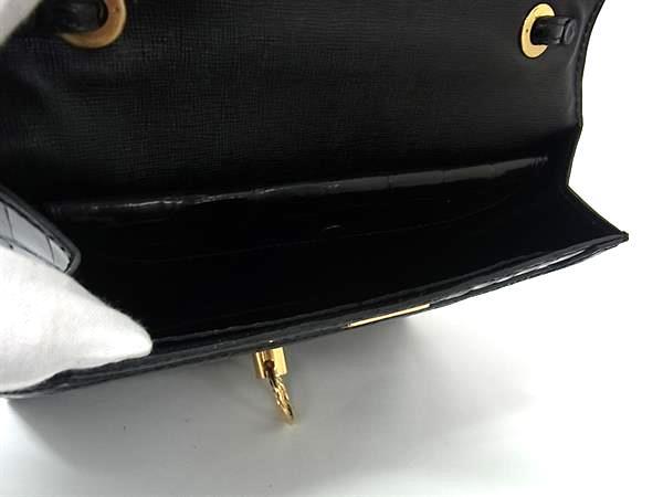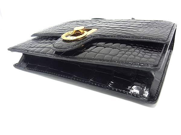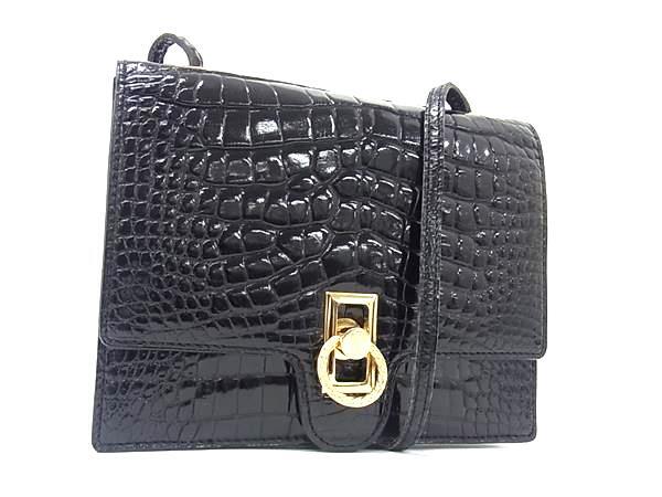 1円 ■極上■本物■美品■ Deverre デベール クロコダイル ショルダーバッグ 肩掛けかばん レディース ブラック系 BS0975